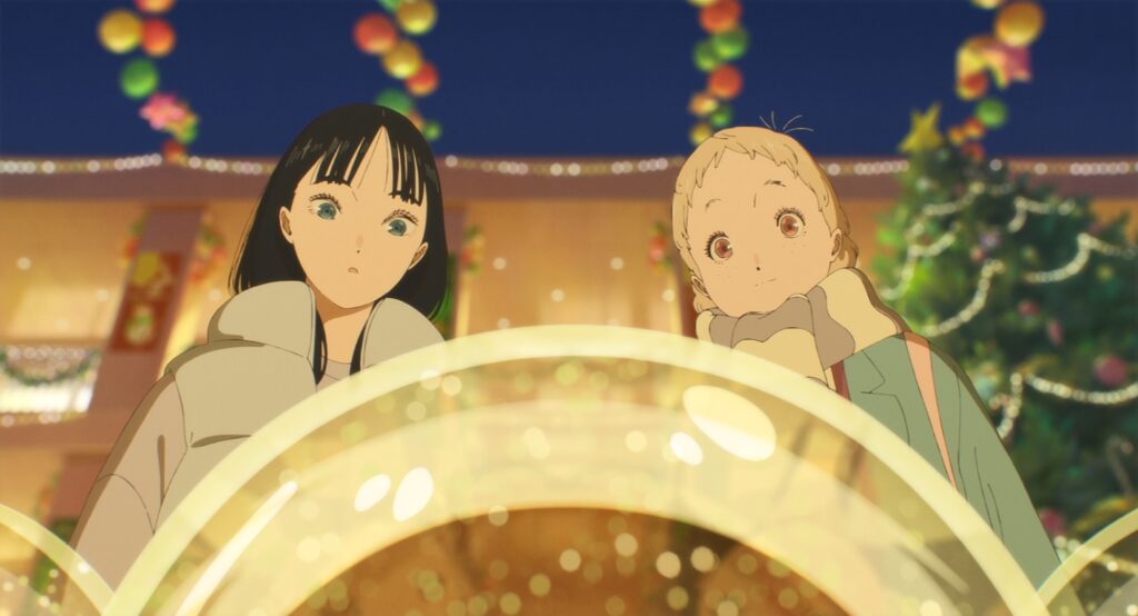 What makes The Colors Within work so well is how the naturalistic animation combined with the specific set-pieces and situations create such a distinct feeling and atmosphere. There are just so many gorgeous, evocative moments where the movie lingers: Kimi’s forlorn reflection in a set of Newton balls; the slightly fuzzy city lights behind Totsuko’s hand as she waves goodbye to Kimi; Rui’s sneakers on the snow-covered steps of the church, shifting as he calls his mother. All the small details contribute to a feeling of soft loneliness that slowly lessens as the characters grow closer and closer.