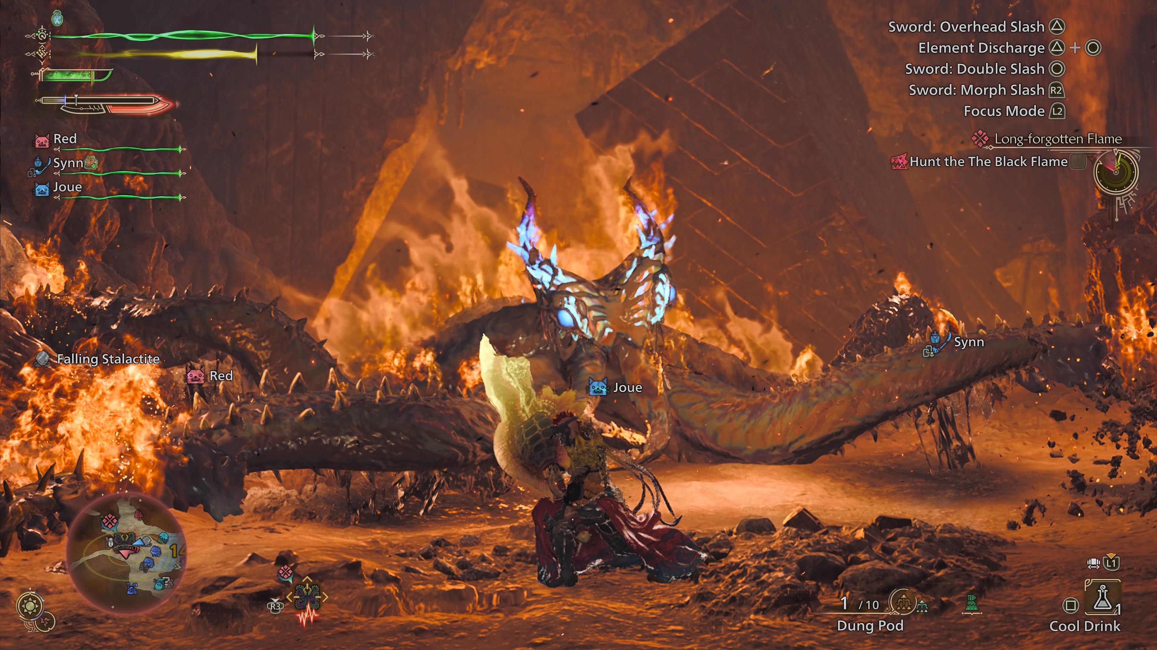 Since the encounter occurs during a main mission, you’ll be thrust into the fray after the introductory cutscene. As per usual, whenever you’re asked if you’re ready to depart, make sure that you’re carrying regular and mega potions with you. If you’re short on the latter, take a lap around the biome and loot any honey you come across. That being said, you might find it in the Forest biome more easily. Cool Drinks are also a must when you’re in the Basin biome.