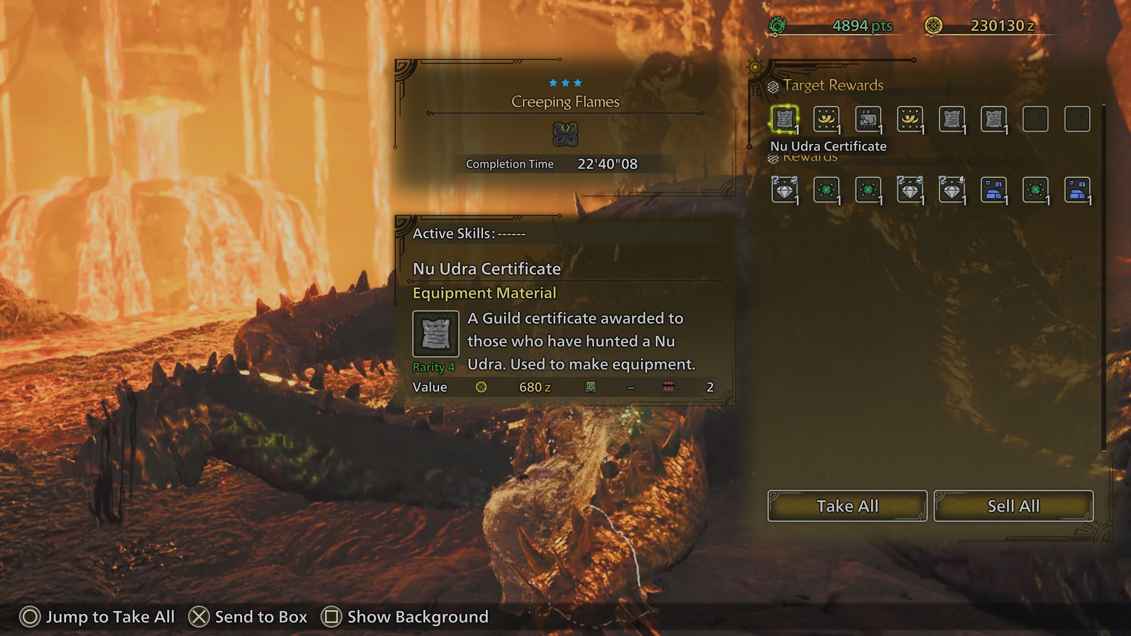| Nu Udra Hide | Target rewards (x1/25%). Wound destroyed reward (x1/45%). Carving (x1/38%) | 3 stars | N/A |