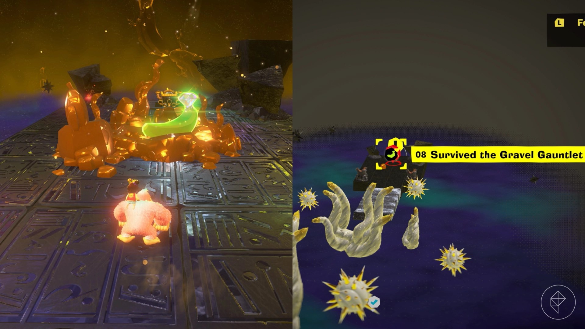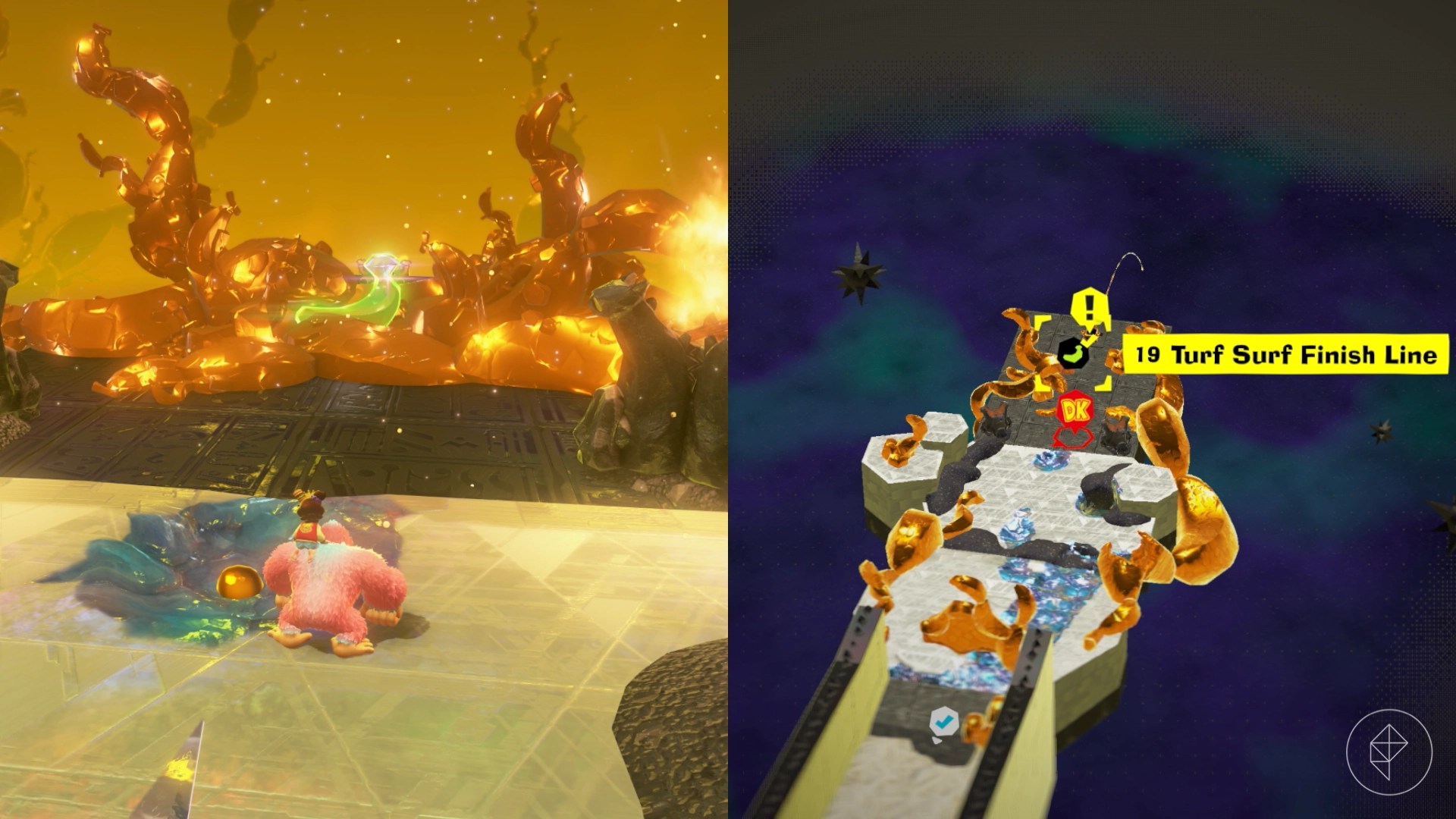 The Planet Core is full of your usual enemies, gold, and a bunch of thorns. You’ll need to navigate your way through the dangerous terrain and utilize all of your Bananza forms to grab all of these bananas.