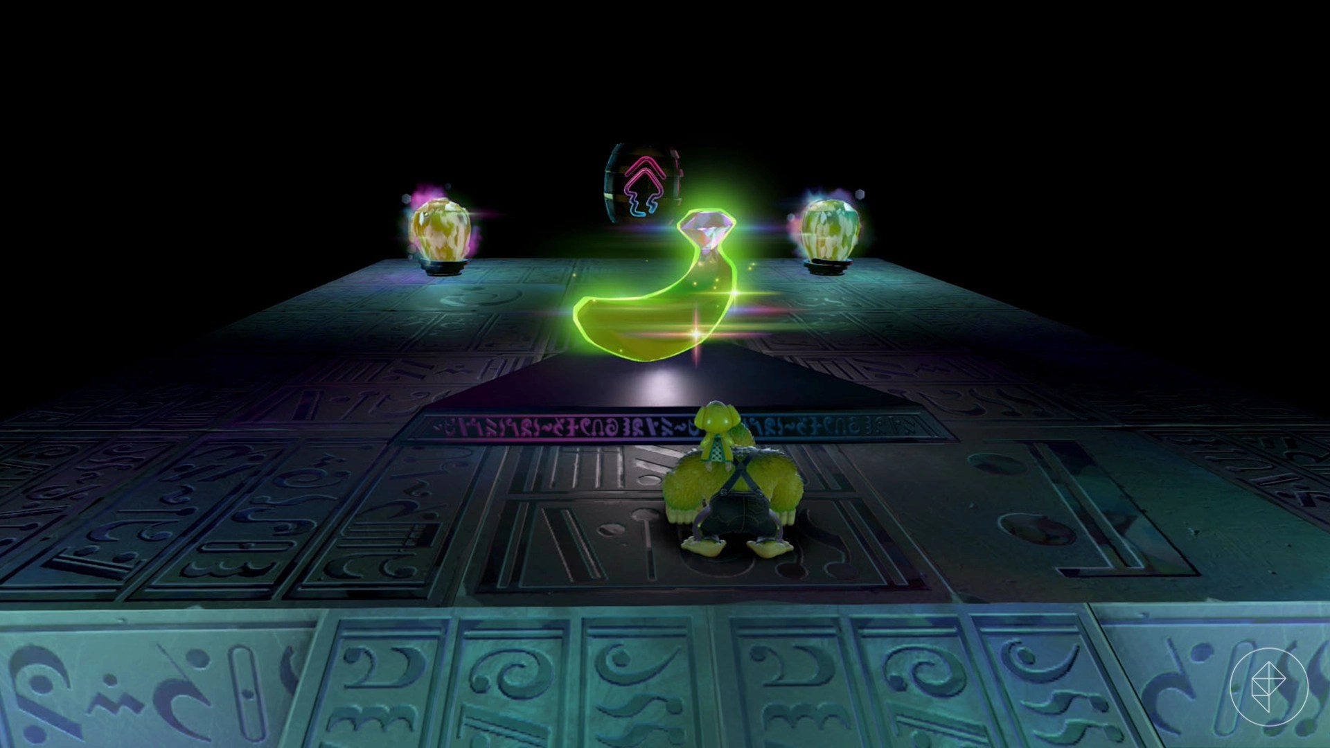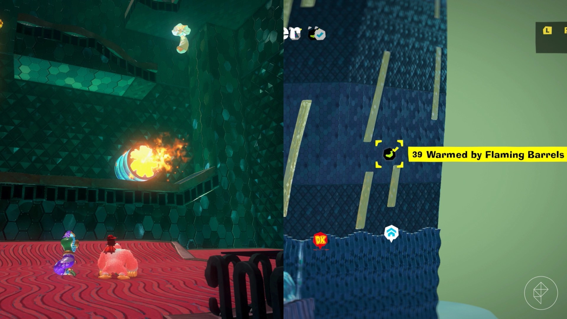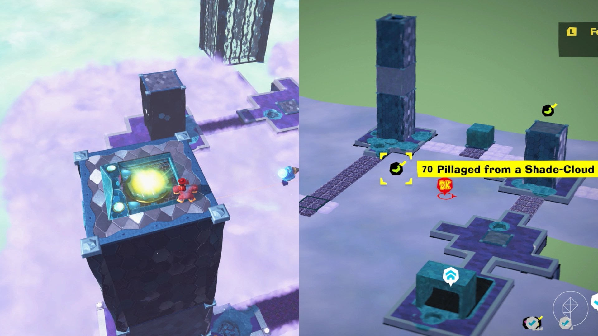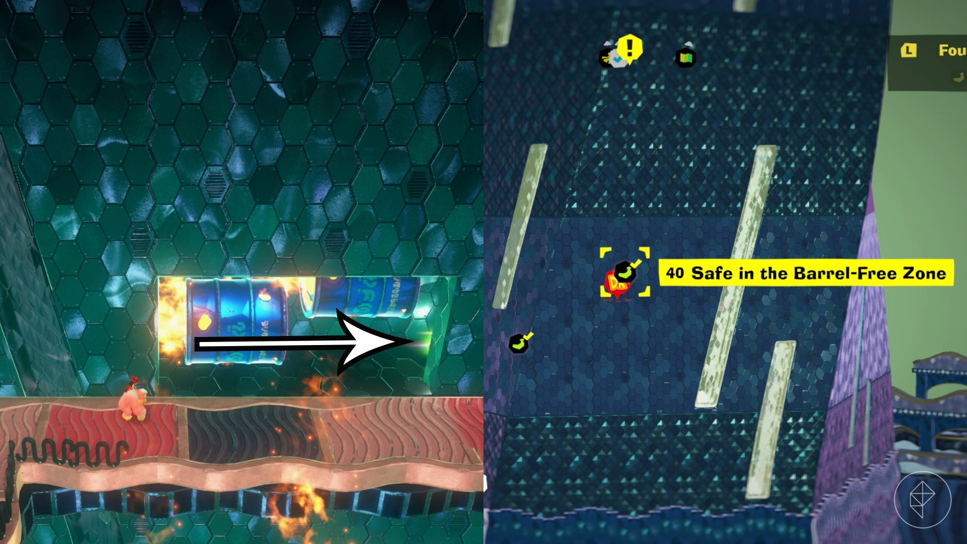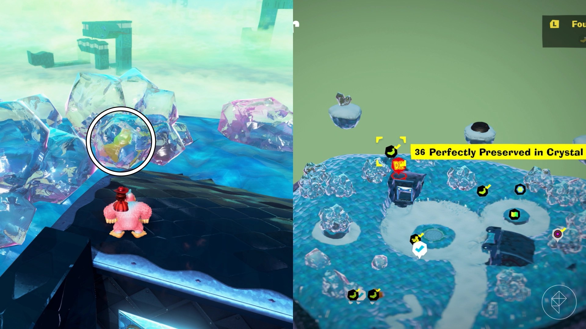 Break open the cracked wall to find and complete this combat challenge for your banana. You’ll need to defeat five crockoids that have to be exposed to light first to win.