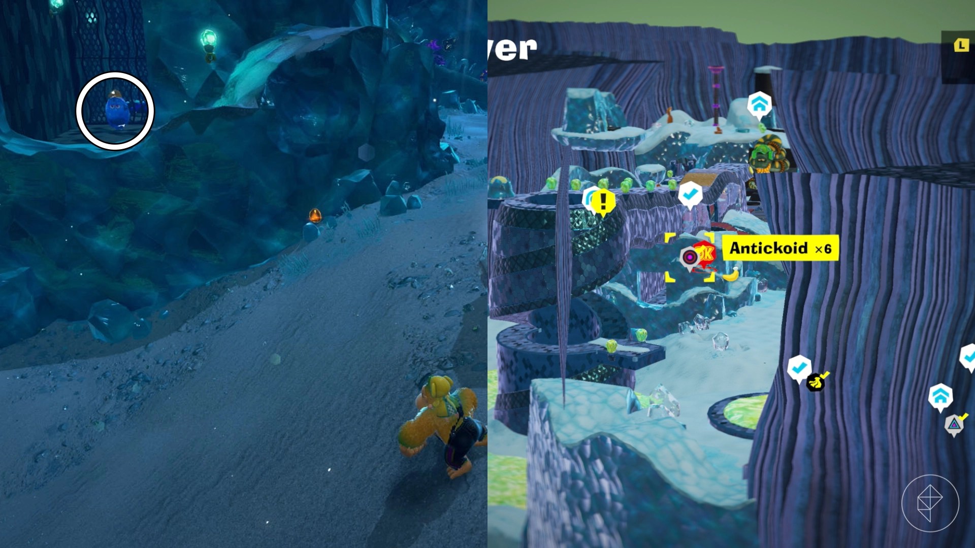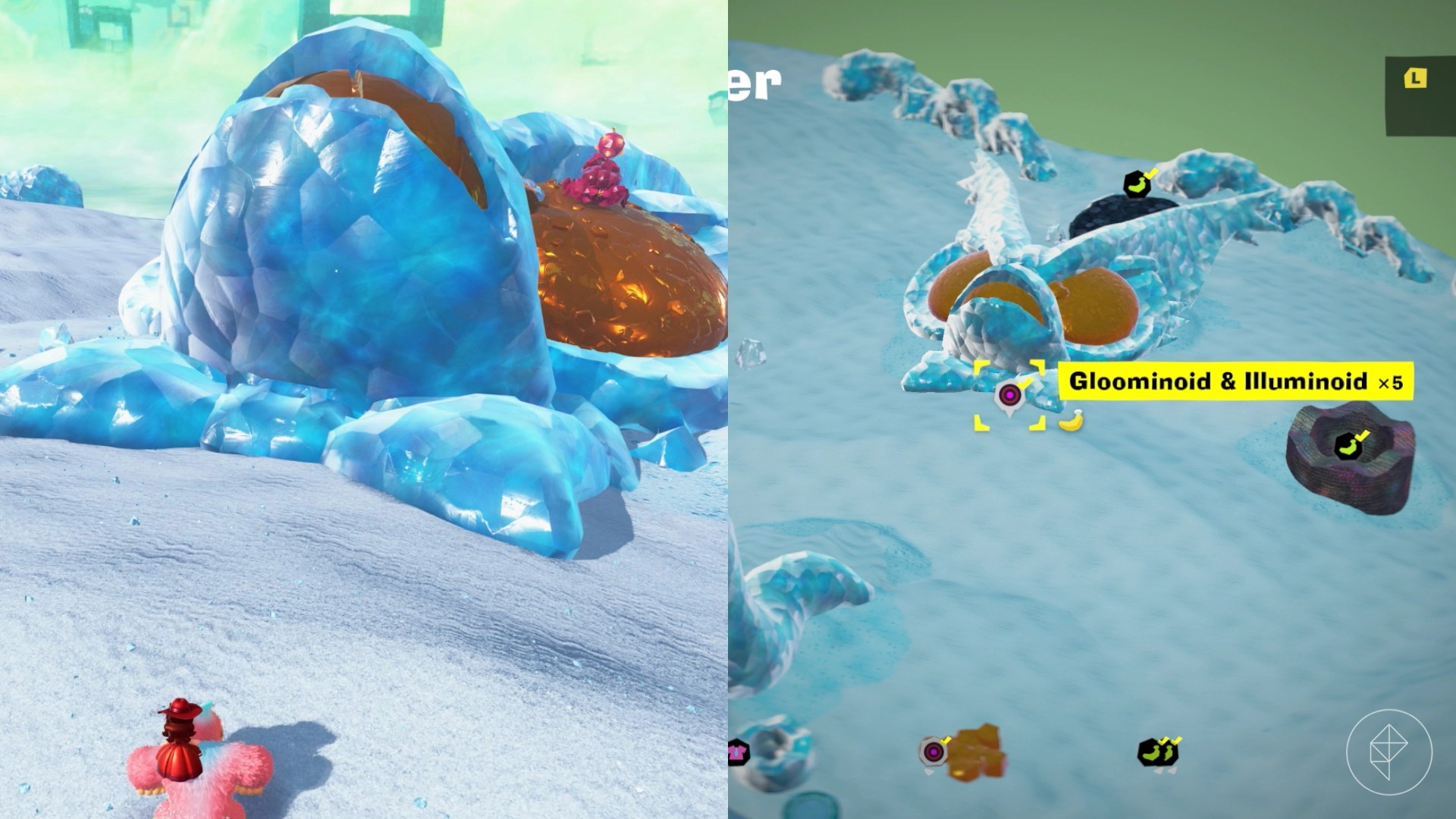 Drop into this hole across from the blocked-off ruins to find the Constructone who will open up the ruins in exchange for 1,000 gold. These ruins are tricky, as you’ll need to Turf Surf using the bodies of the gloominoids, but since their structural integrity worsens so heavily in sunlight, you’ll want to avoid the sun as much as possible when skating through.