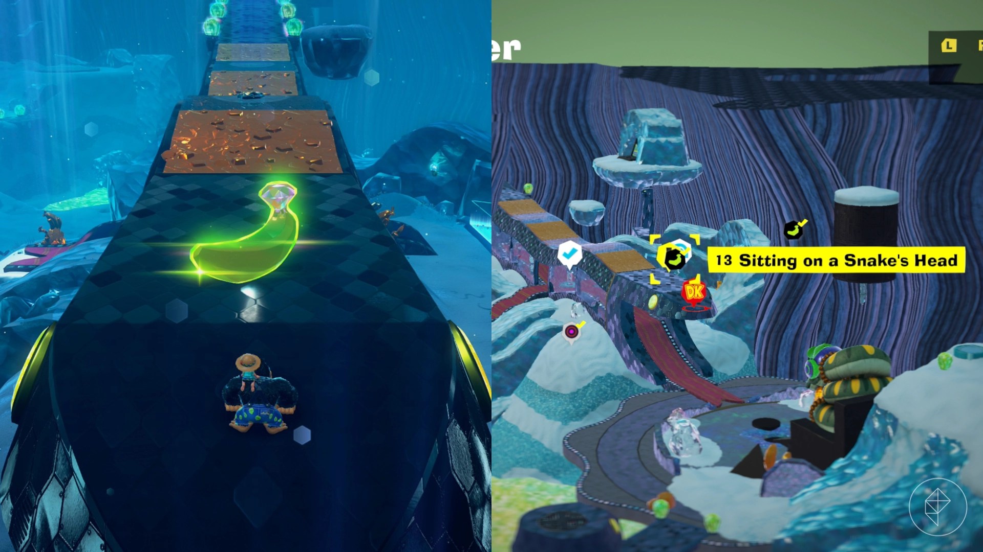 Use Snake Bananaza’s charge jump to land on top of the giant snake hallway’s head to get this banana.