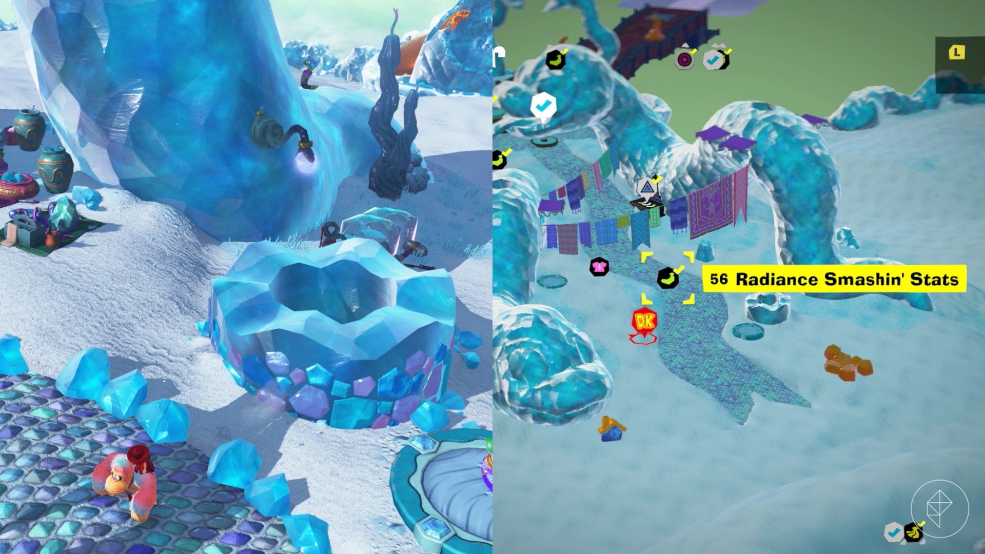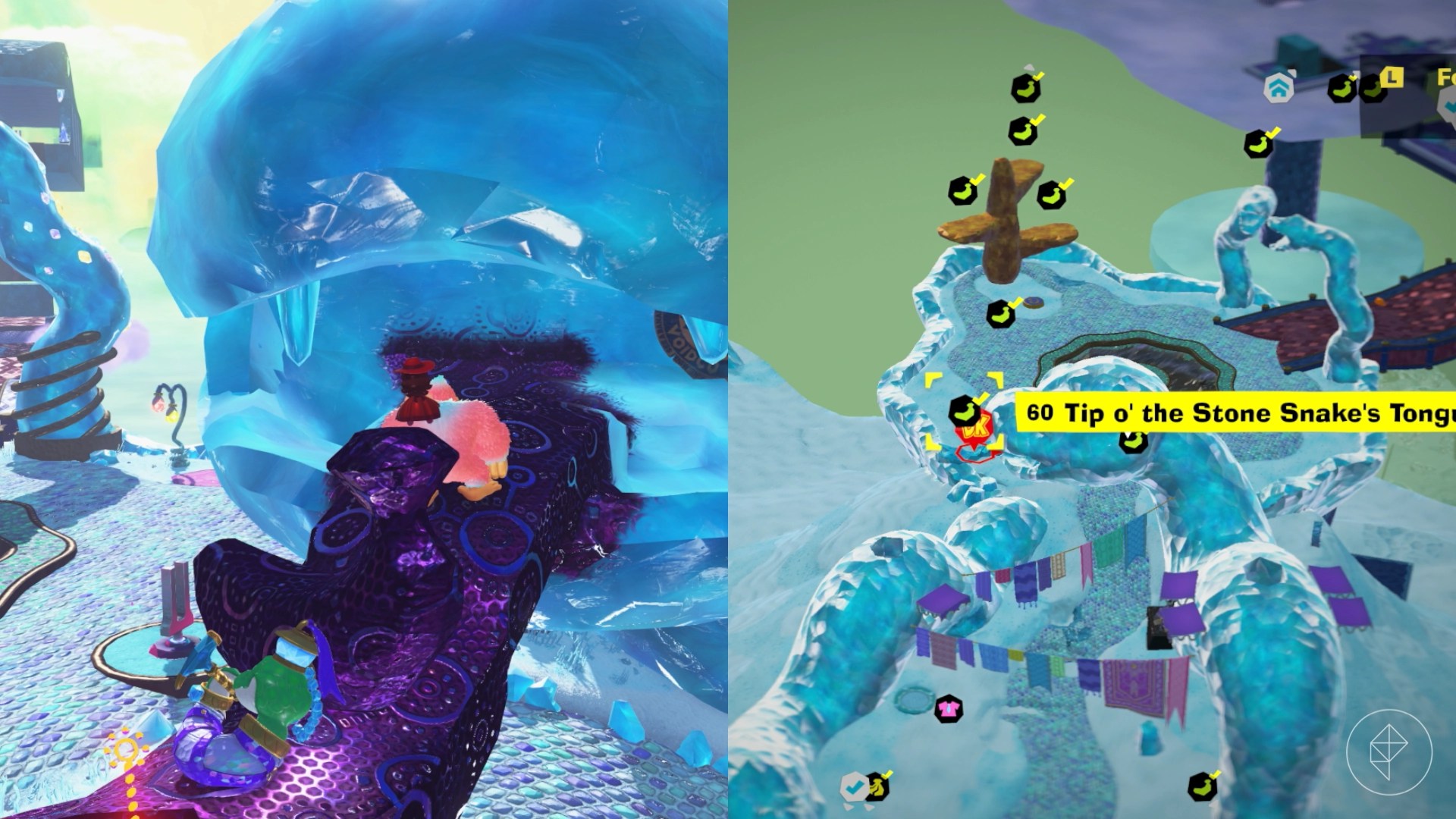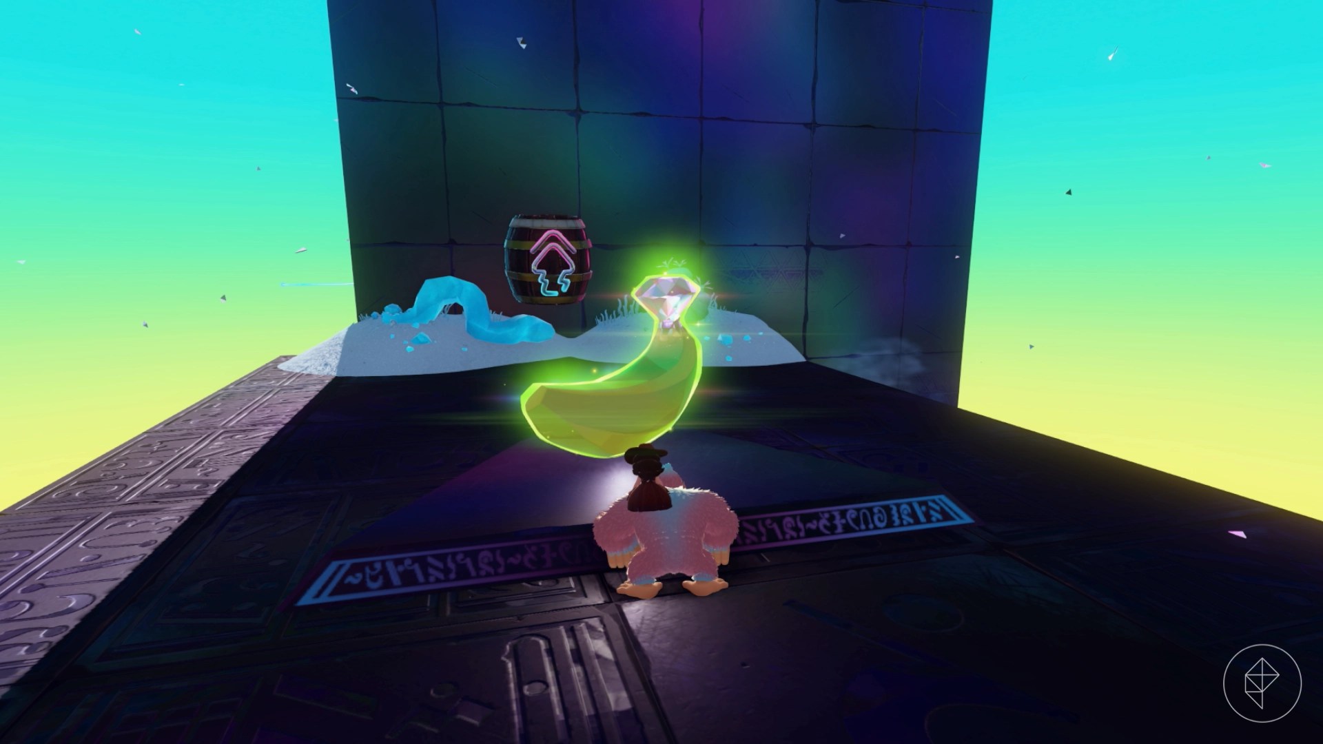 Jump into this hole and follow the path to find our buddy Smashintone, who will give you a banana if you’ve smashed 70,000 cubic meters of crystal in the layer. Keep in mind that crystal is the glass-looking terrain you can find around the Window Viper, not the ice-like stuff that the snake sculptures are made of (that’s actually technically stone).
