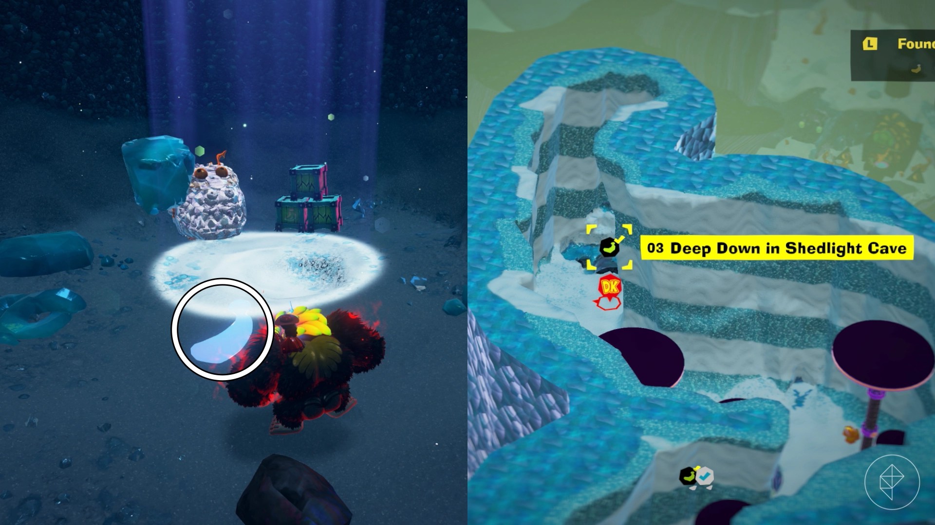 Right next to the Shedlight Cave teeleport spot begin digging down and you’ll find this banana. You can use DK’s Hand Slap sonar to help locate the banana.