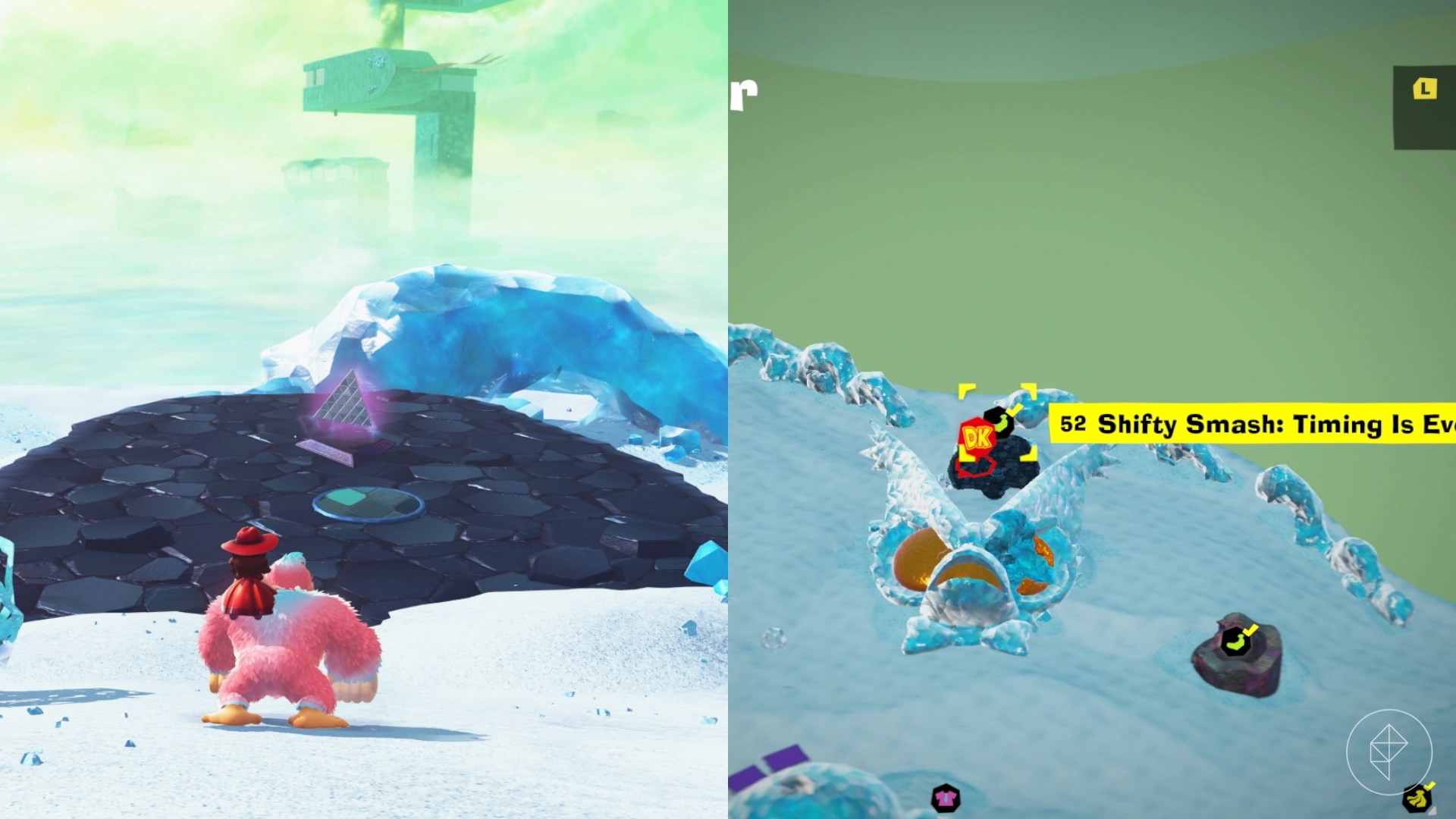 Transform into Kong Bananza and destroy the concrete floor below the concrete pillar to find the banana.