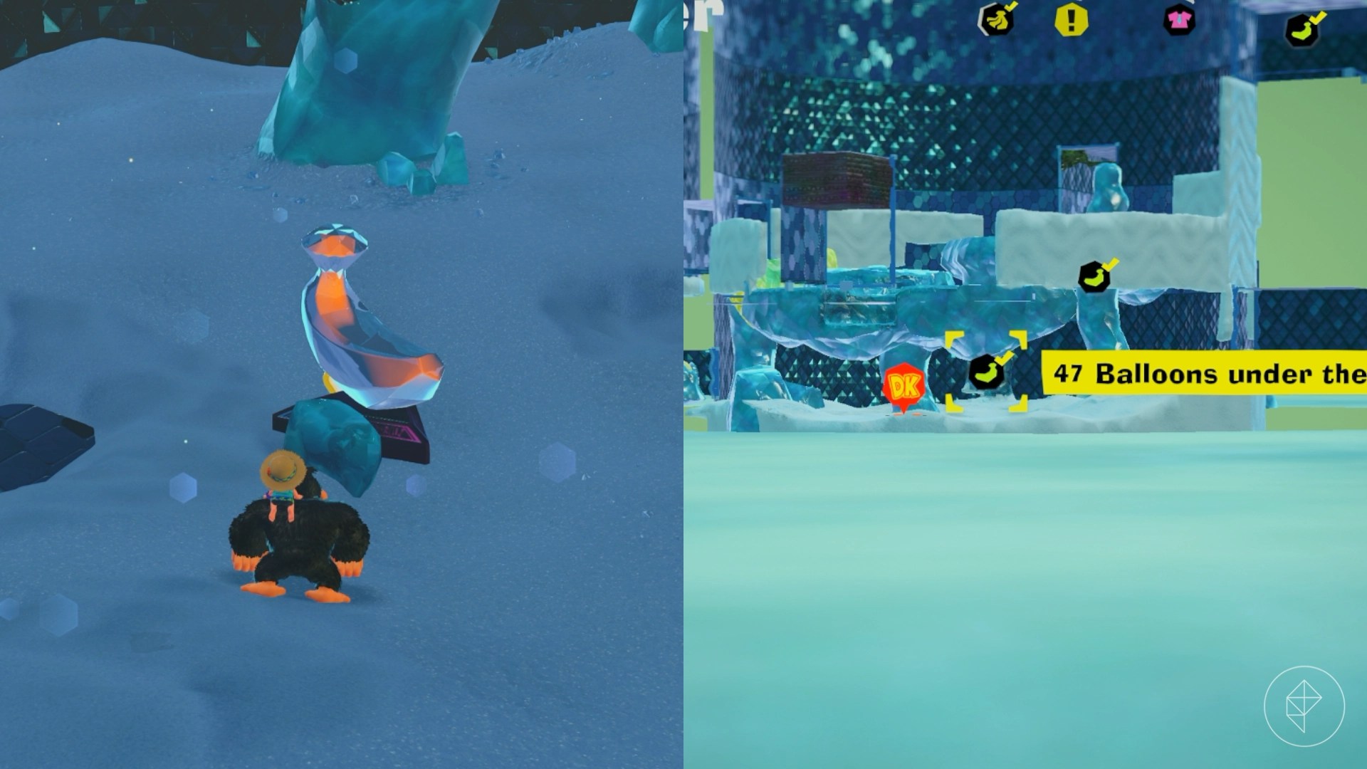 The fifth balloon is hidden inside a dark hallway, whose entrance is lit up by the glow stone ore. Head inside to find another trapantuloid and bring them under the sunlight in the middle of the arena to stun them. Jump on top and punch downwards to defeat them. After you got all five balloons, return to the middle of the bottom floor to collect your banana.