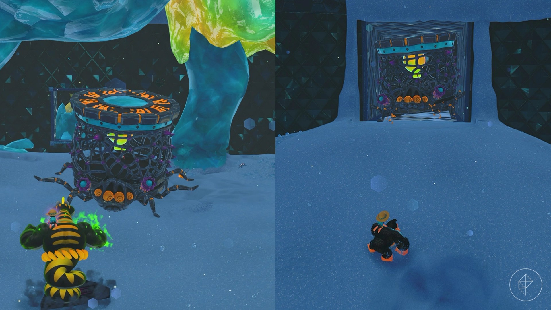 Drop into this hole across from the blocked-off ruins to find the Constructone who will open up the ruins in exchange for 1,000 gold. These ruins are tricky, as you’ll need to Turf Surf using the bodies of the gloominoids, but since their structural integrity worsens so heavily in sunlight, you’ll want to avoid the sun as much as possible when skating through.