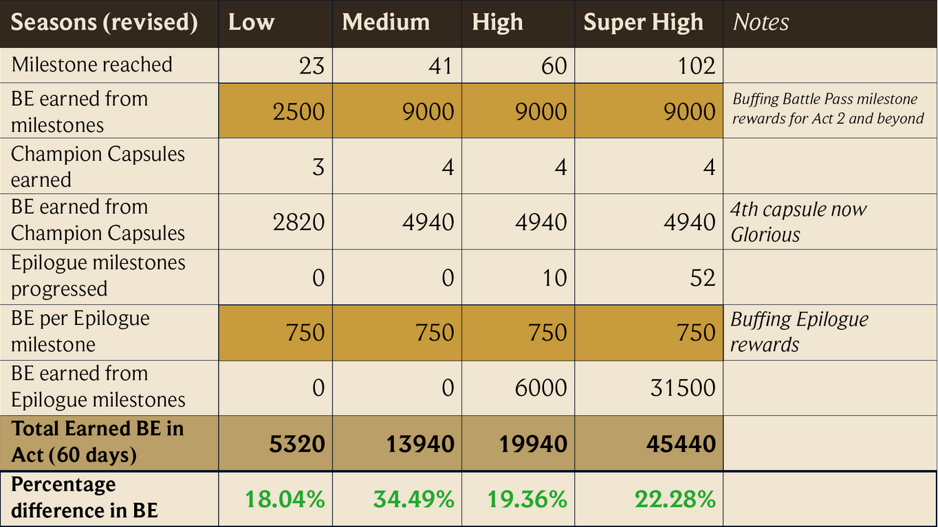 To address the issue, Riot says it will “significantly increase” the Blue Essence earn rates on the free battle pass track in changes expected to go live in patch 25.S1.2, as seen in the chart below: