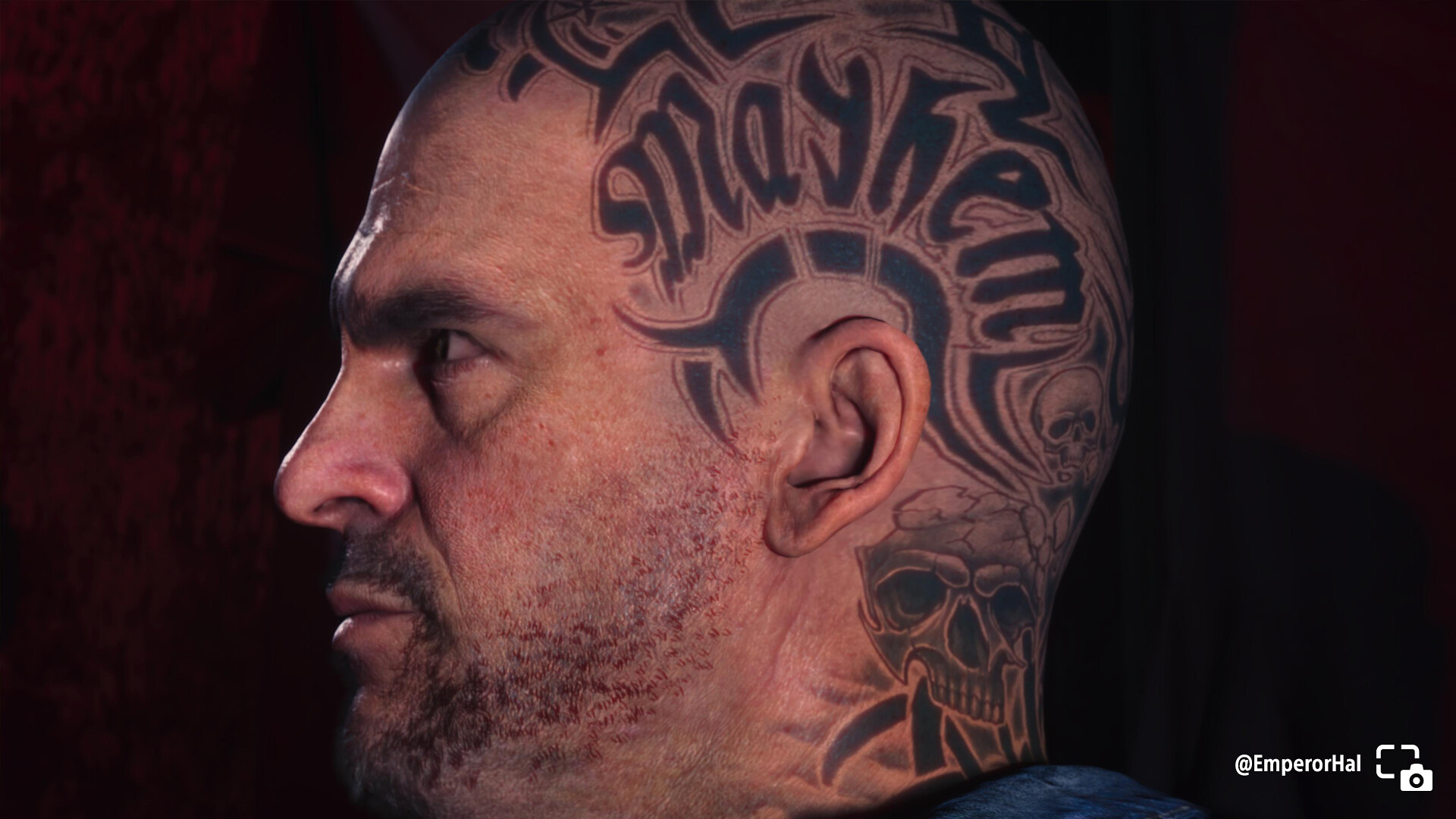 EmperorHal shares a profile portrait of Boozer and his head tattoo