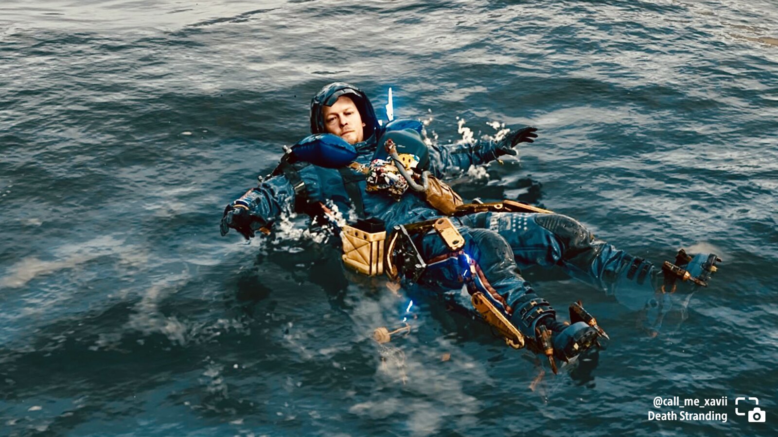 call_me_xavii shares Sam floating through a stream of tar in Death Stranding.