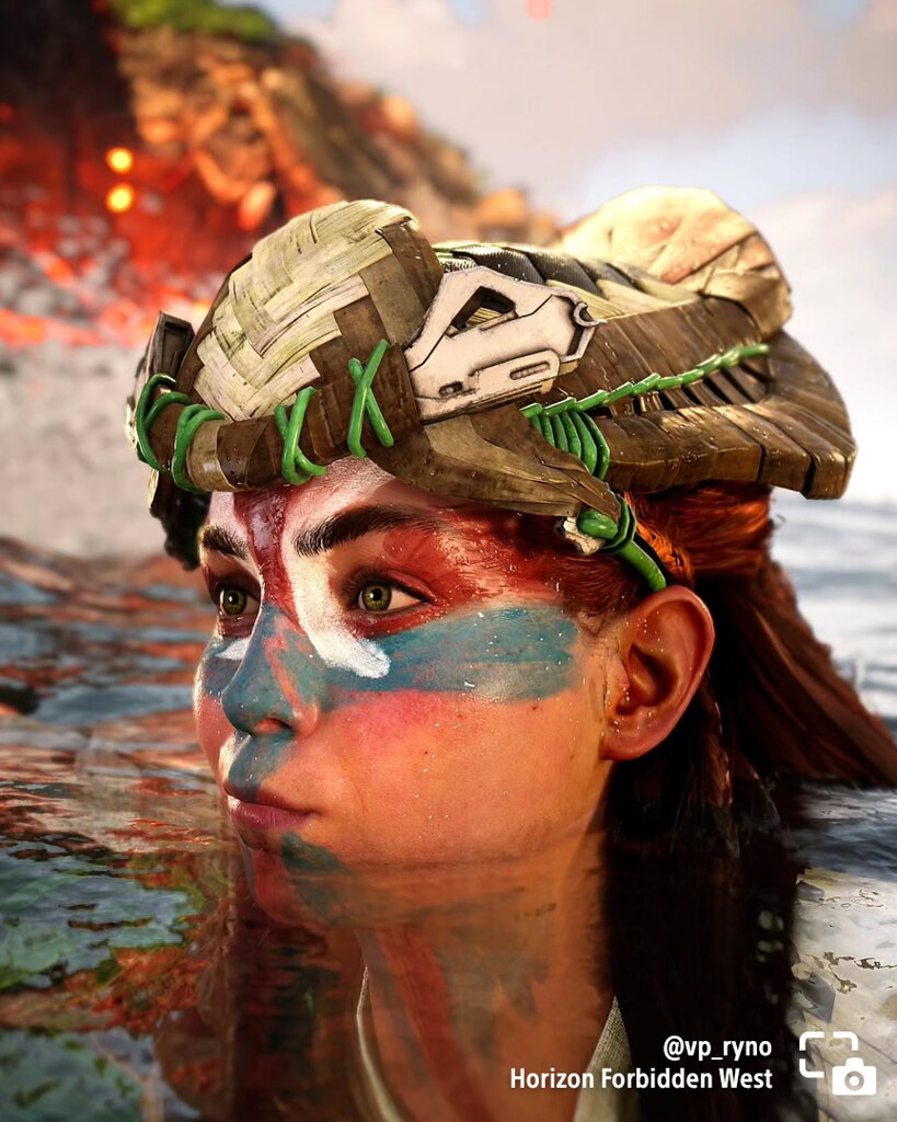 vg_ryno shares Aloy peeking her head above water in Horizon Forbidden West.