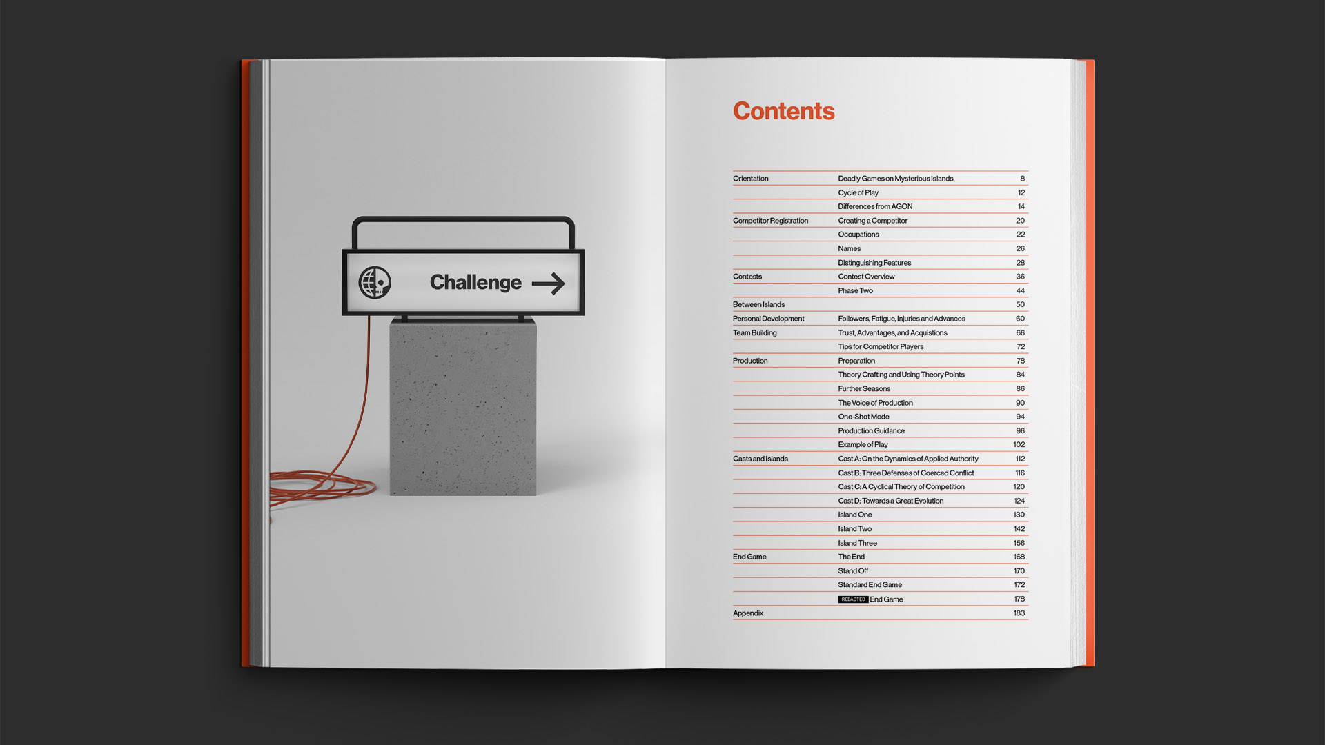 While the base game is lethal, there is a ruleset that offers a social-oriented mode of play. The foundations of the game are still the same, as the base stats are built off Survivor terminology like Social Game and Challenge Beast, though with a few uniquely horrifying ones like Deathmatch and [REDACTED]. Each time a player engages in a competition or a challenge, they have the opportunity to gain followers. The better you do, the more followers you gain. The more followers you have, the more the game’s producers favor you — with higher dice to roll and better equipment to help you survive. In a social media ecosystem that often feels like a battle royale, with creators fighting algorithms and the whims of corporate overlords, the mechanic feels especially prescient.