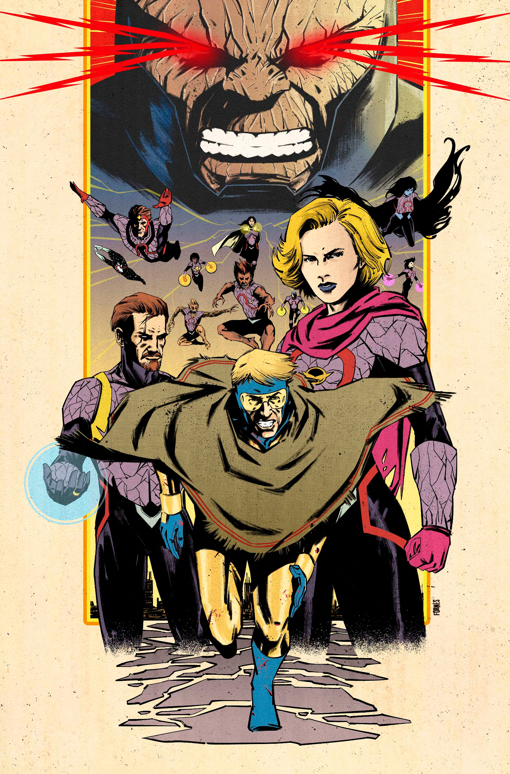 Based on the main cover for DC K.O. #1, Superman, Firestorm, Plastic Man, Power Girl, Vixen, and Black Lightning are all joining the fray. They, and many more DC superheroes, will be will be fighting in a “universe-shaking five-level gladiatorial arena [that] emerges from the Earth itself, each descending level testing the heroes in brutal and symbolic ways. The goal? Generate enough Omega Energy to rival Darkseid—and crown a new King Omega,” according to the press release. Williamson promises “unexpected heroes—some you won’t believe will go really far in the fights.”