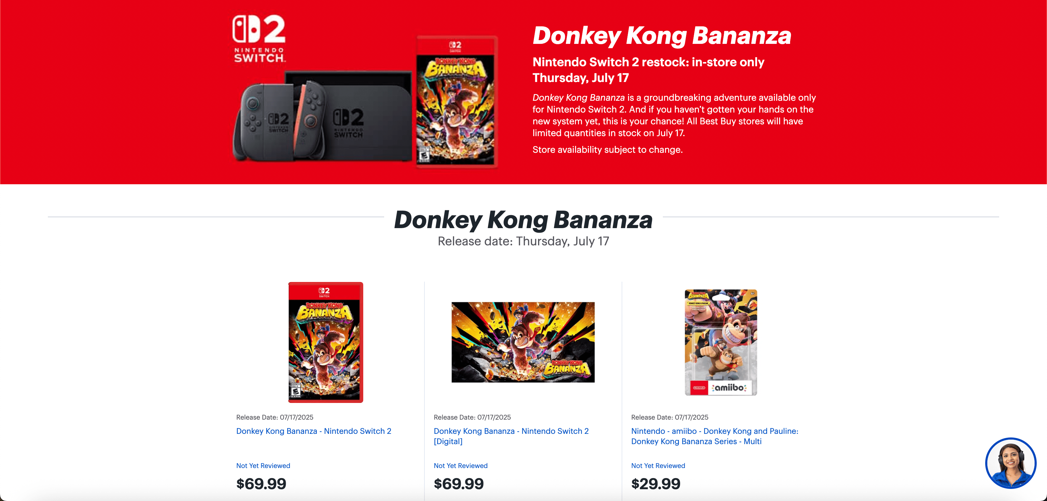 The great Switch 2 restocking is in-store only at your local Best Buy and will coincide with the release of Donkey Kong Bananza. However, the announcement doesn’t reveal whether the store will carry the Mario Kart World bundle, listed at $499.99, or the stand-alone console priced at $449.99 (or both). Regardless of the console bundle, Best Buy did mention that the system’s “availability is subject to change” and varies based on location.