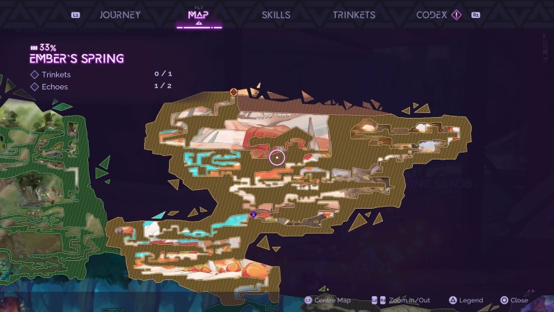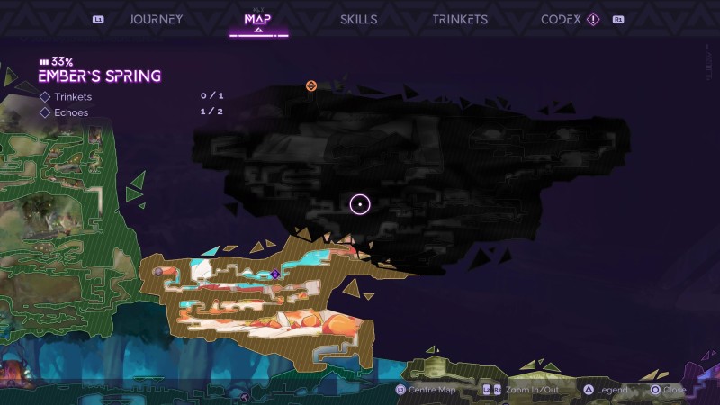 Tales of Kenzera’s main flaw is its map and world designs, which turn a pretty good game into one that’s uninteresting and unintuitive to explore. While most games obscure sections of the map until players explore them, Tales of Kenzera opens up an entire zone as soon as you enter a biome. It’s a minor convenience for navigating through the main plot but a nightmare for figuring out where you have and haven’t been. There’s no way to mark the map or see where you’ve previously visited, save for icons that mark collected items, so in some cases, it’s actually more difficult to backtrack to find secrets.