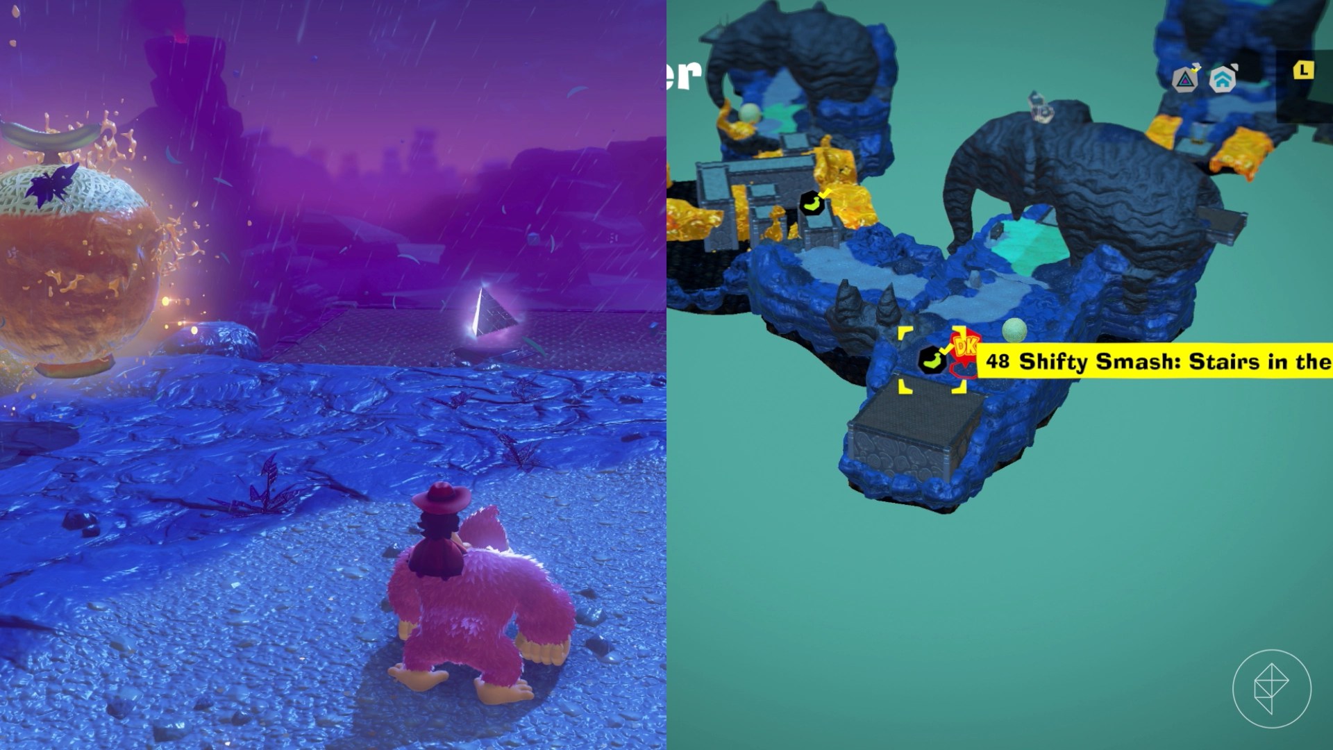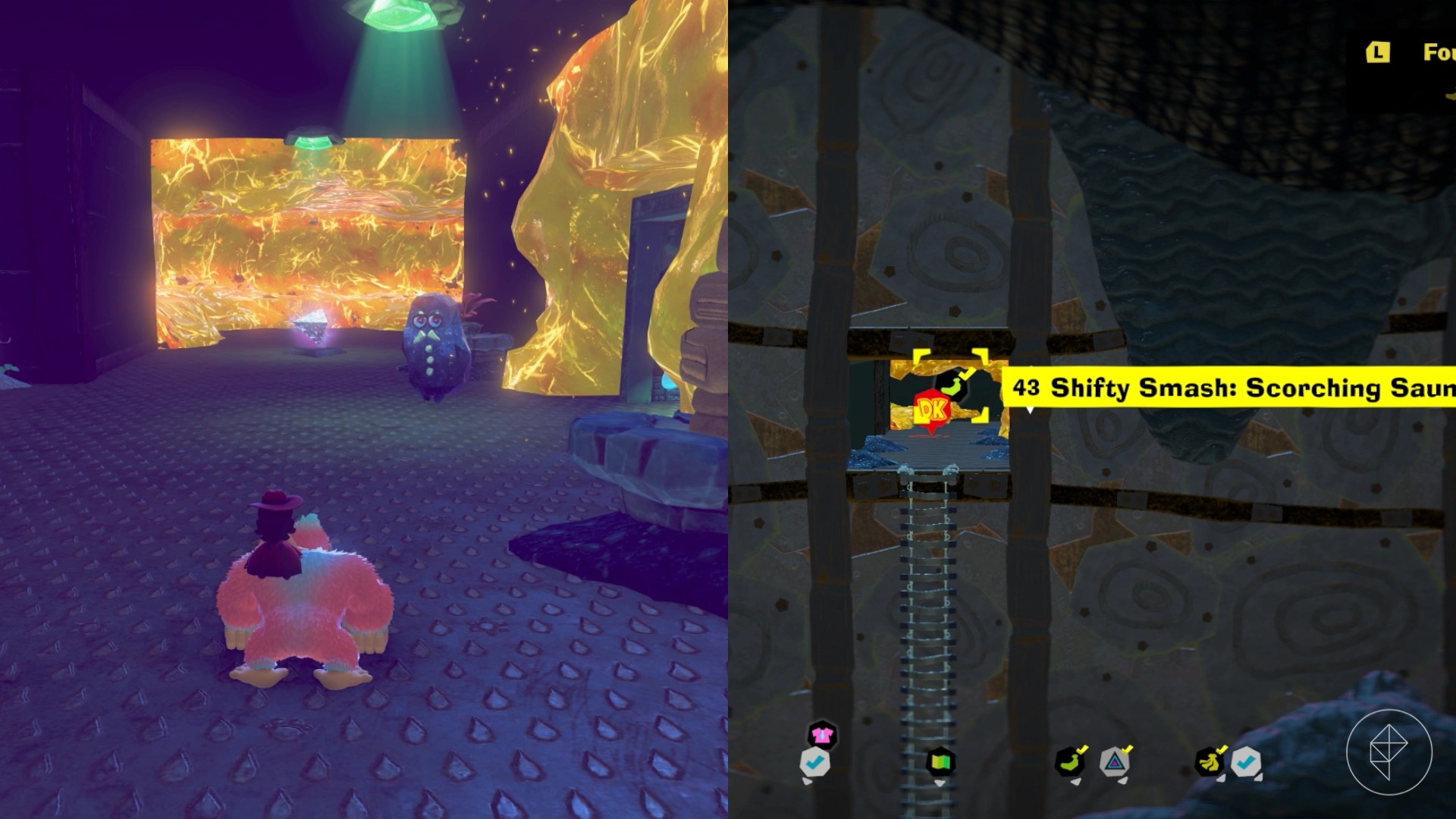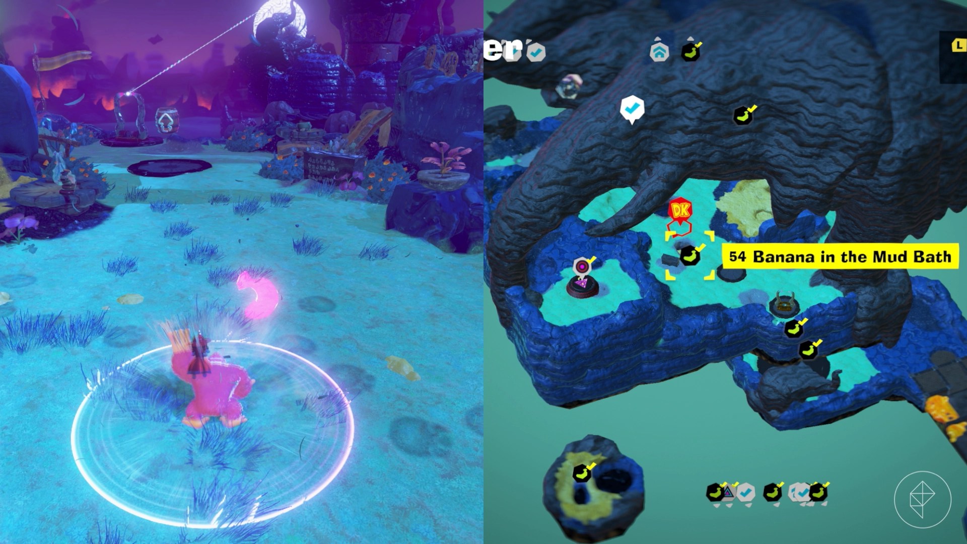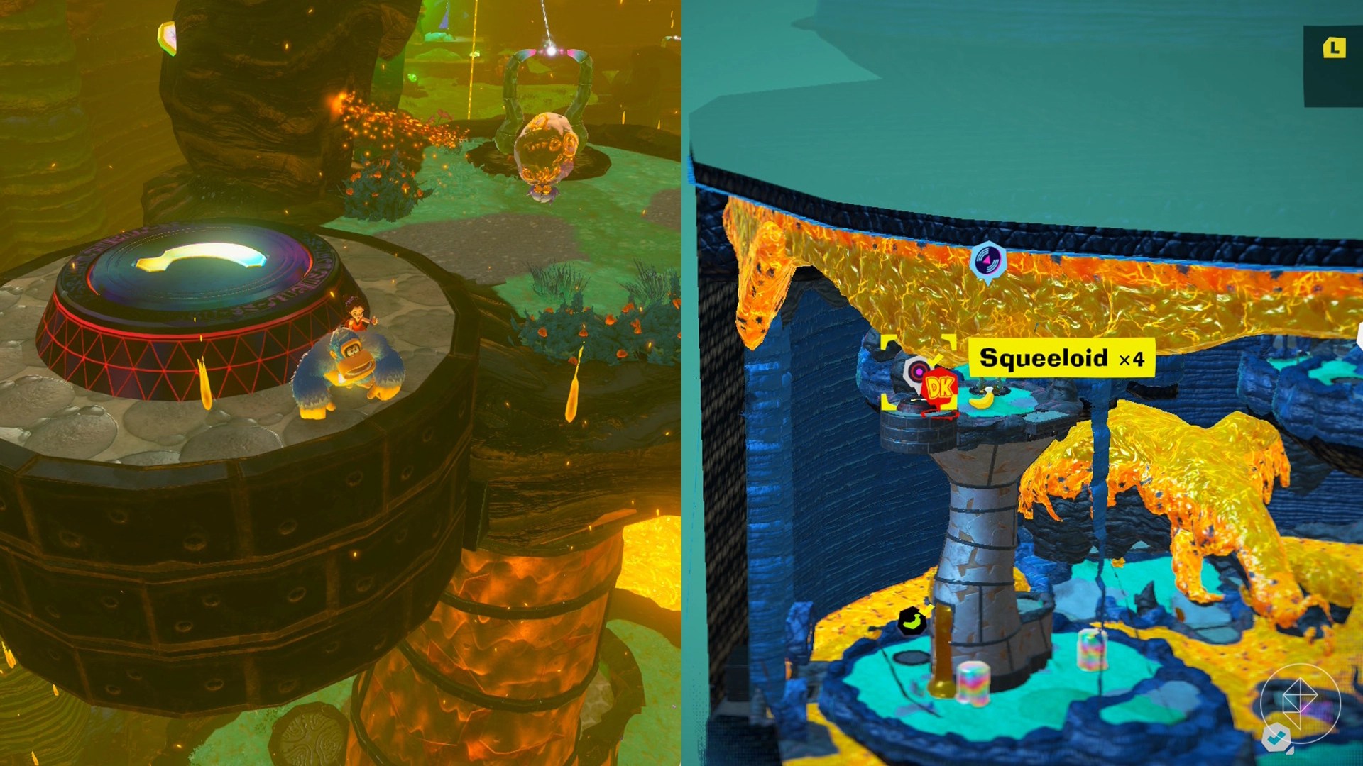 Use a combination of DK’s Hand Slap with Elephant Bananza’s inhaling to get rid of the lava and scout out this banana that’s buried underneath. Be careful as you navigate around this maze, as the camera angles can get kind of wonky.