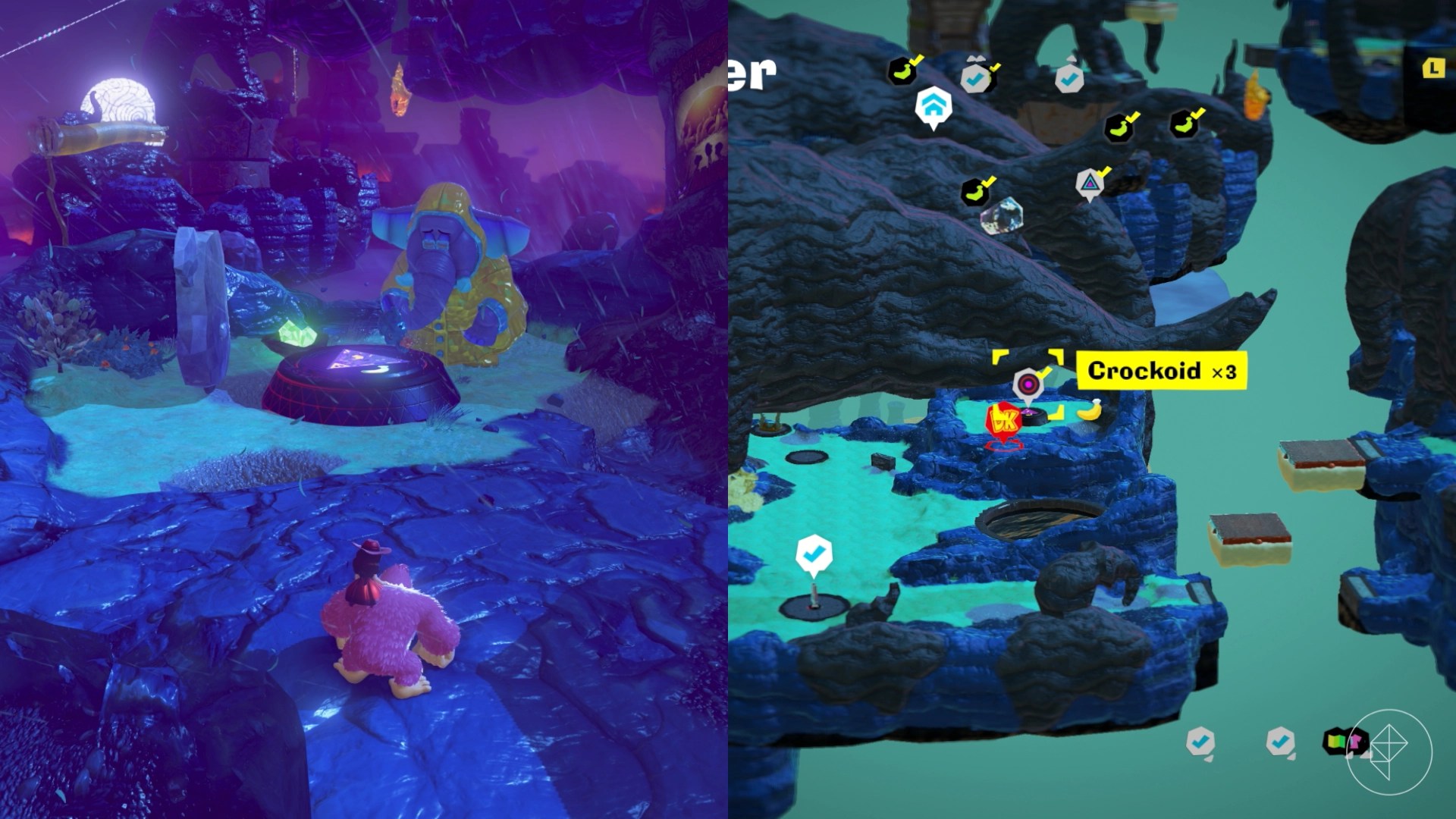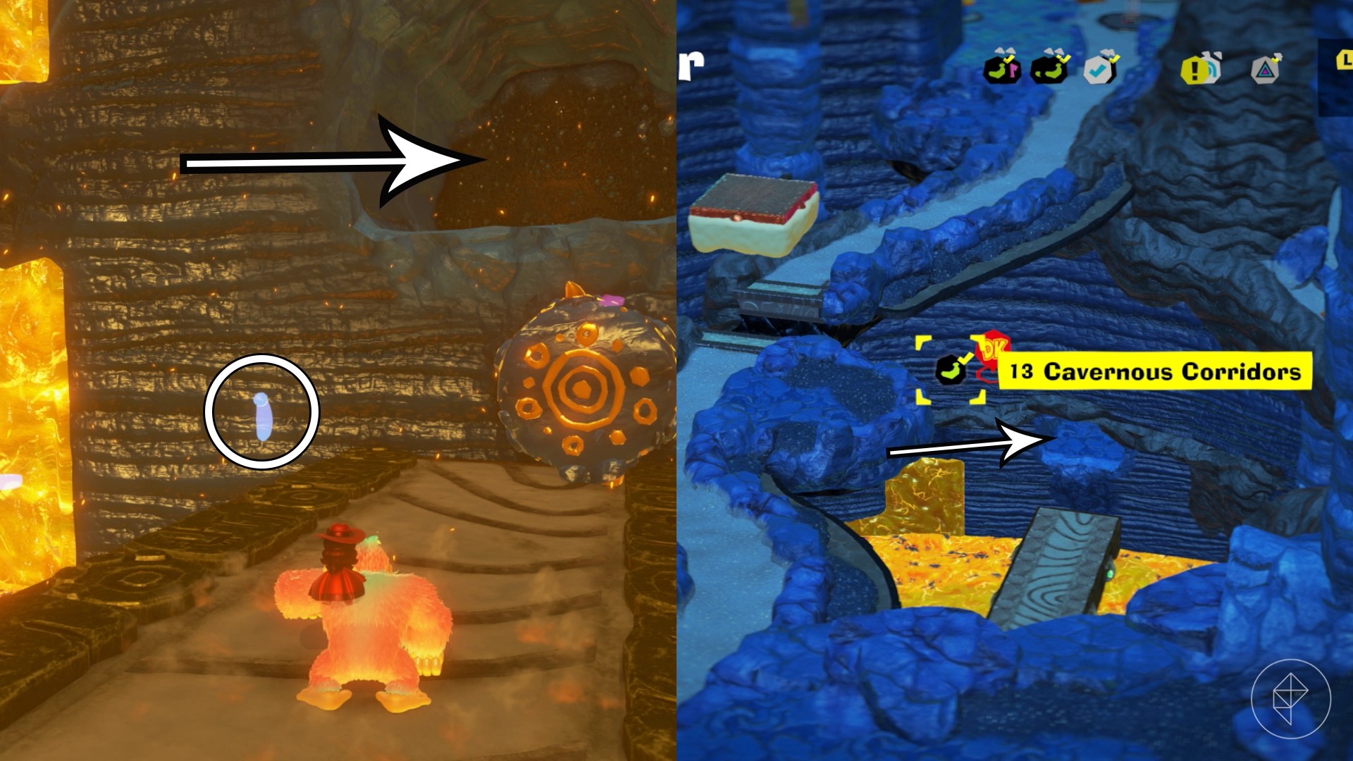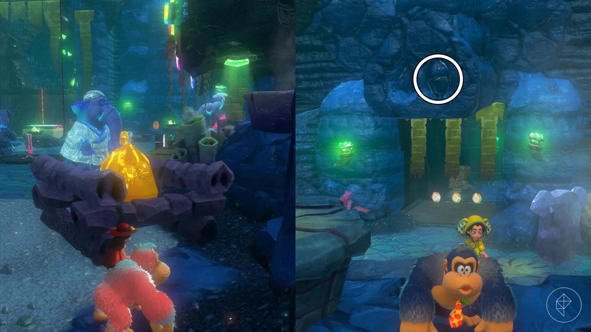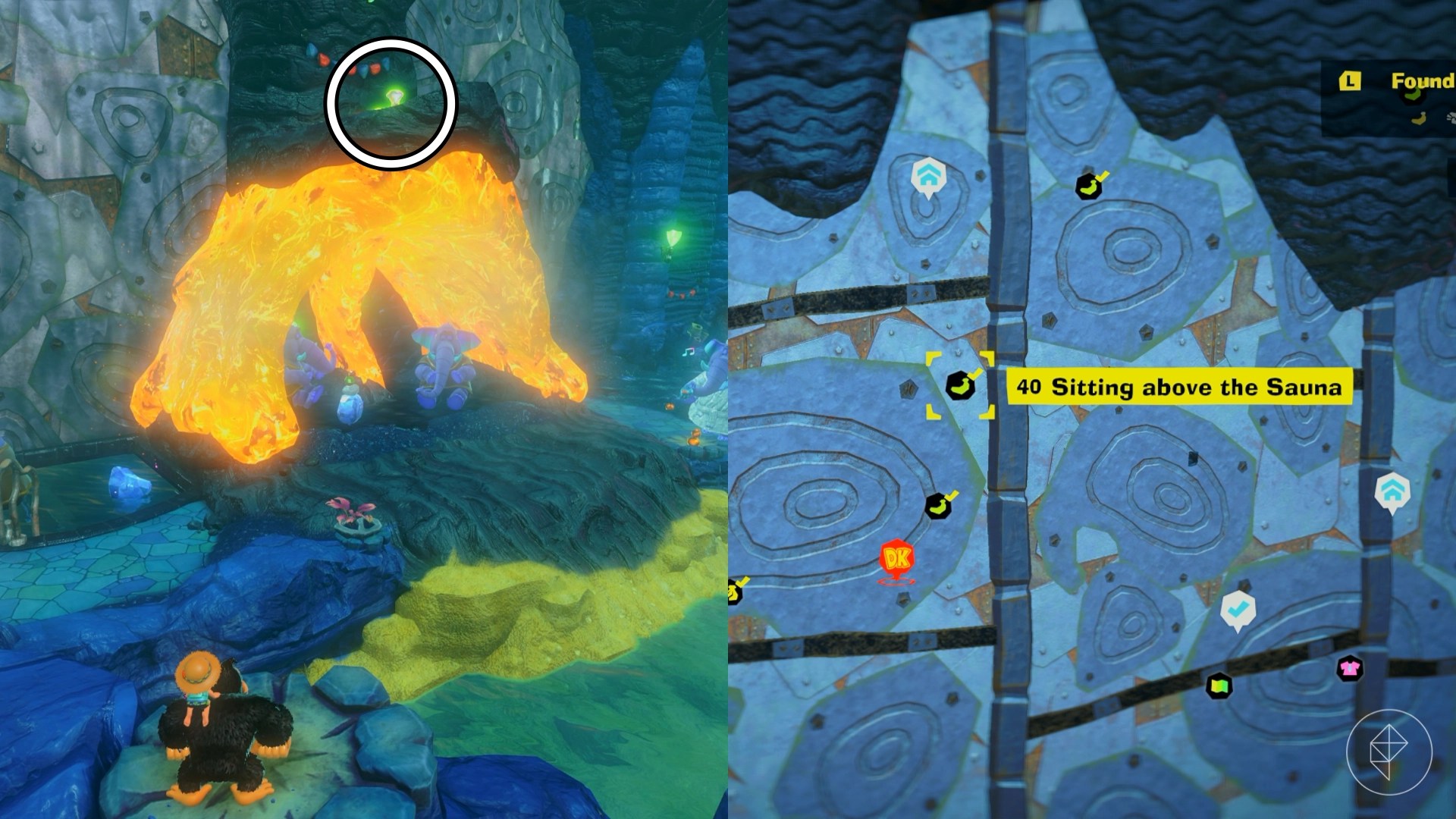 Use a combination of DK’s Hand Slap with Elephant Bananza’s inhaling to get rid of the lava and scout out this banana that’s buried underneath. Be careful as you navigate around this maze, as the camera angles can get kind of wonky.