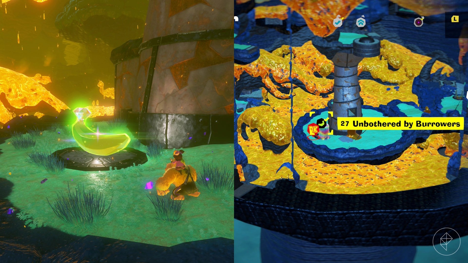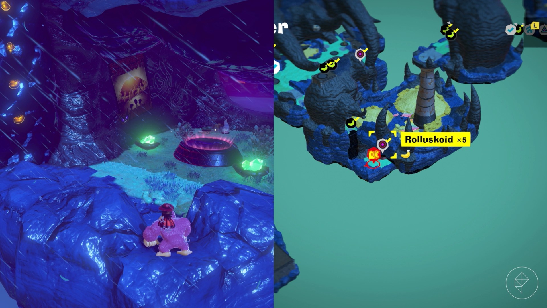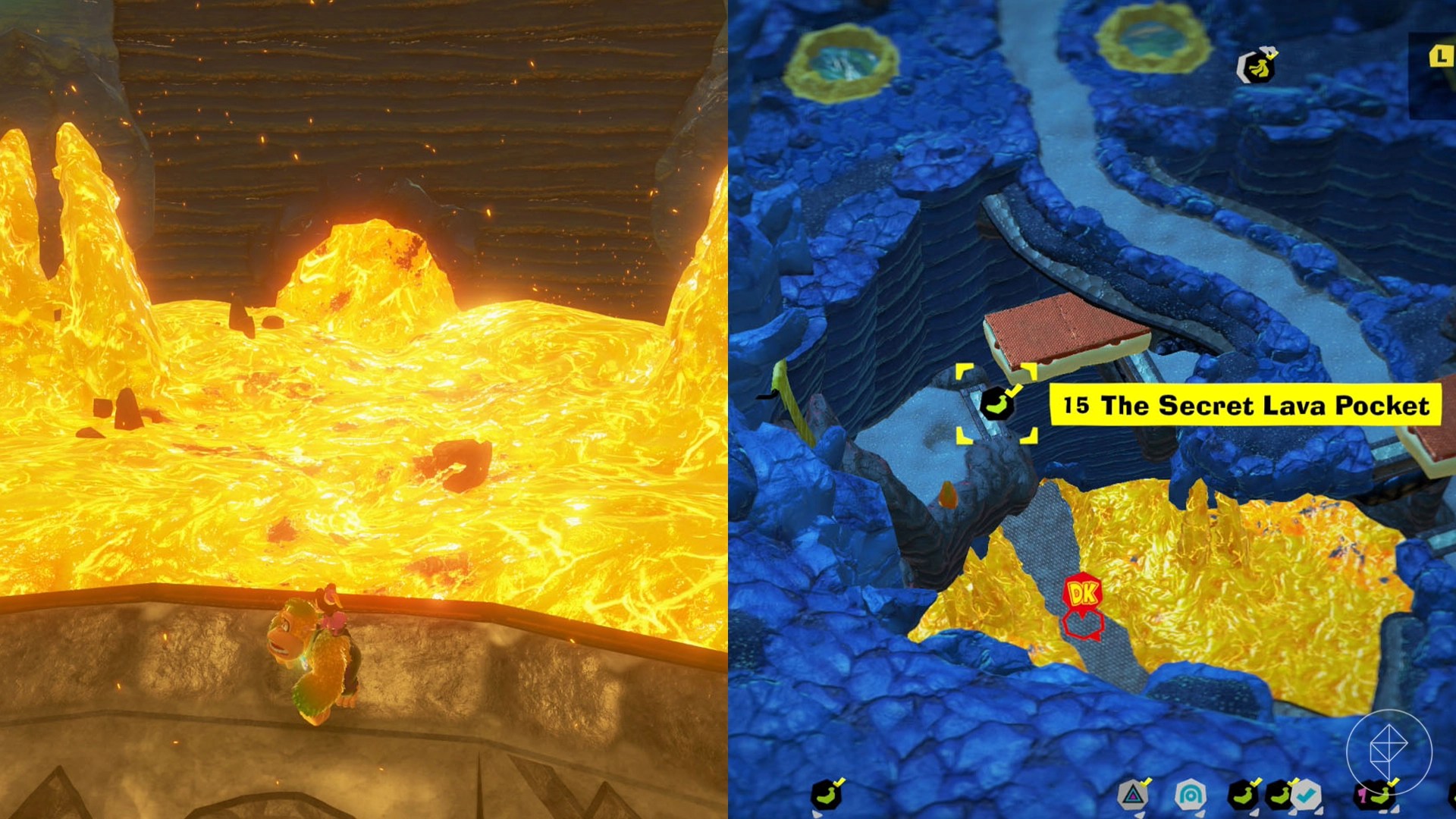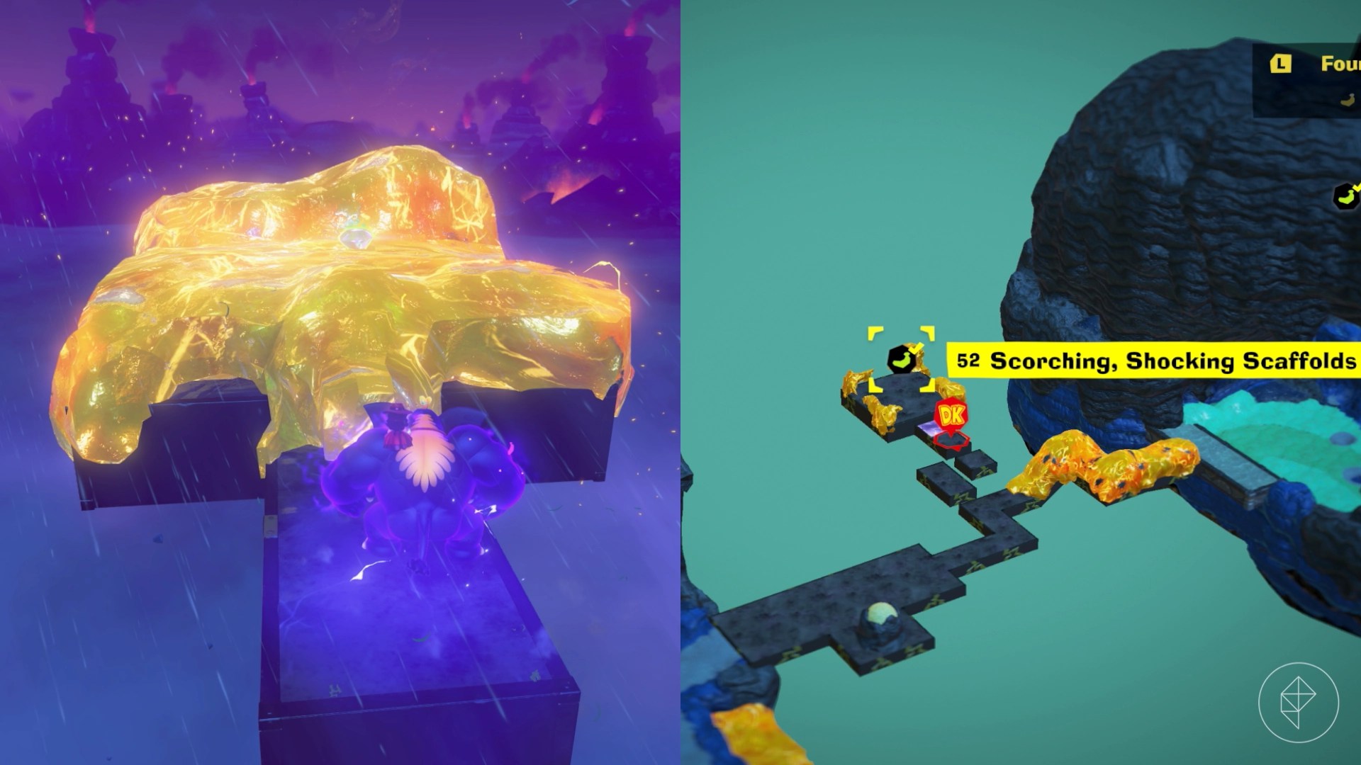 Use a combination of DK’s Hand Slap with Elephant Bananza’s inhaling to get rid of the lava and scout out this banana that’s buried underneath. Be careful as you navigate around this maze, as the camera angles can get kind of wonky.
