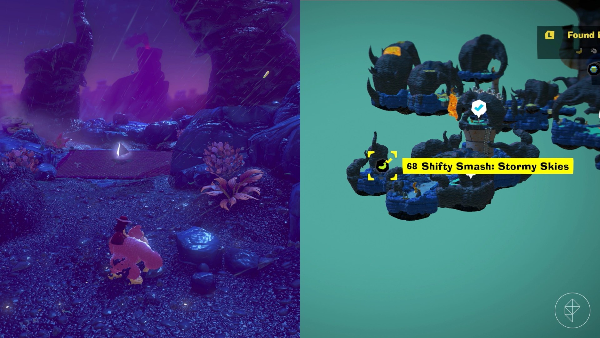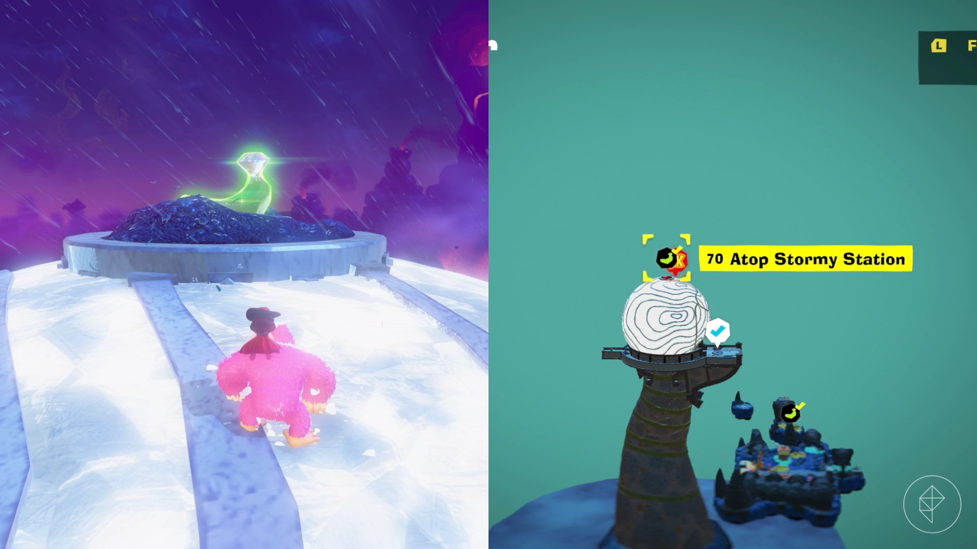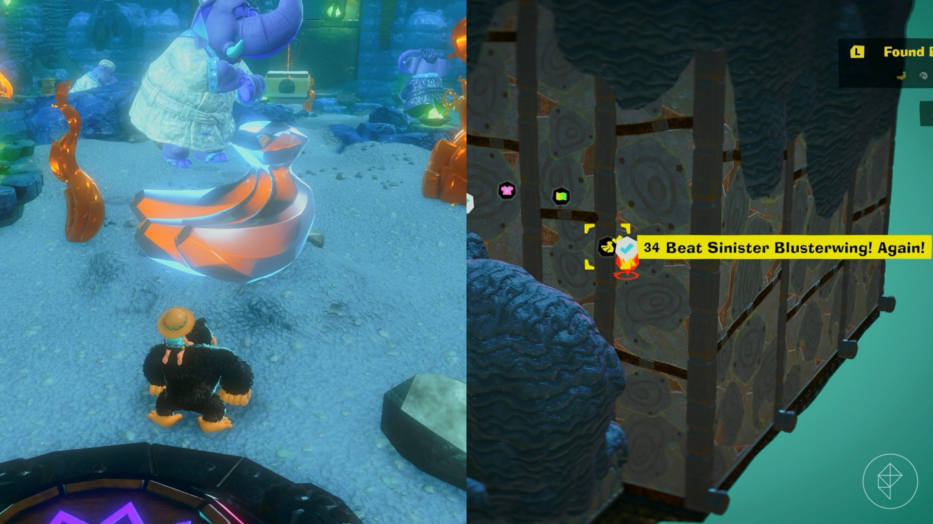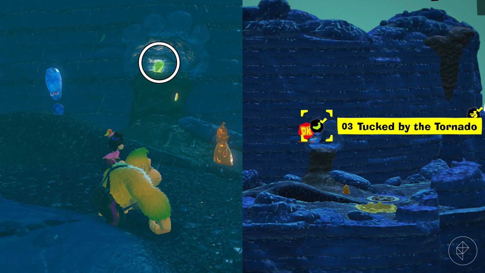 On the outskirts of Mount Gusty Tusk, on the other side of the wall behind the getaway, there’s an area where a tornado appears and follows you. You will find this Banandium Gem inside a small opening in the wall.