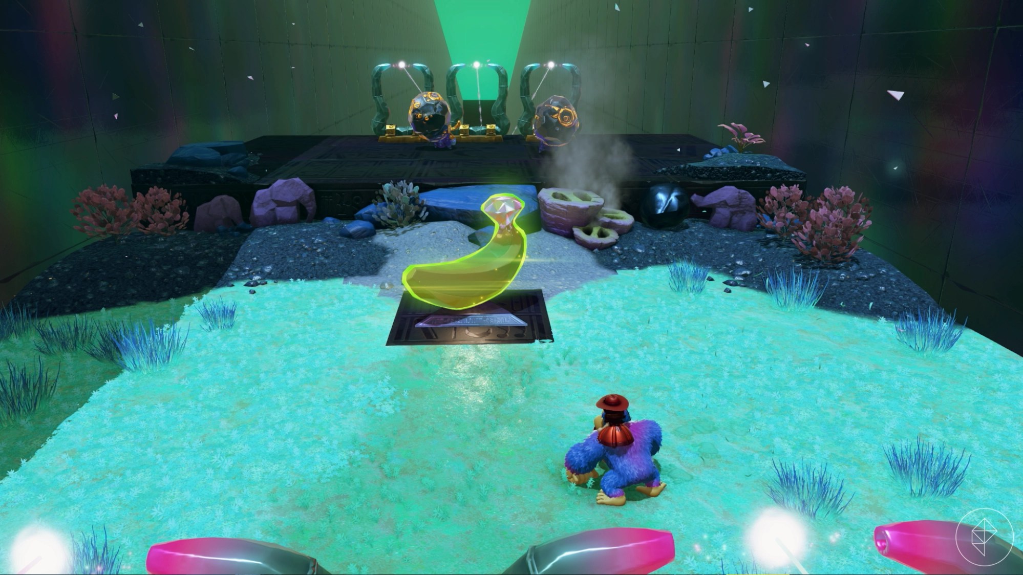 Use a piece of liftoff ore to float to the small island above where you destroyed the void machine for the previous banana. Unseal the ruin, and head inside to face four sturdy Squeeloids. Knock them into the lava to defeat them and earn this banana.