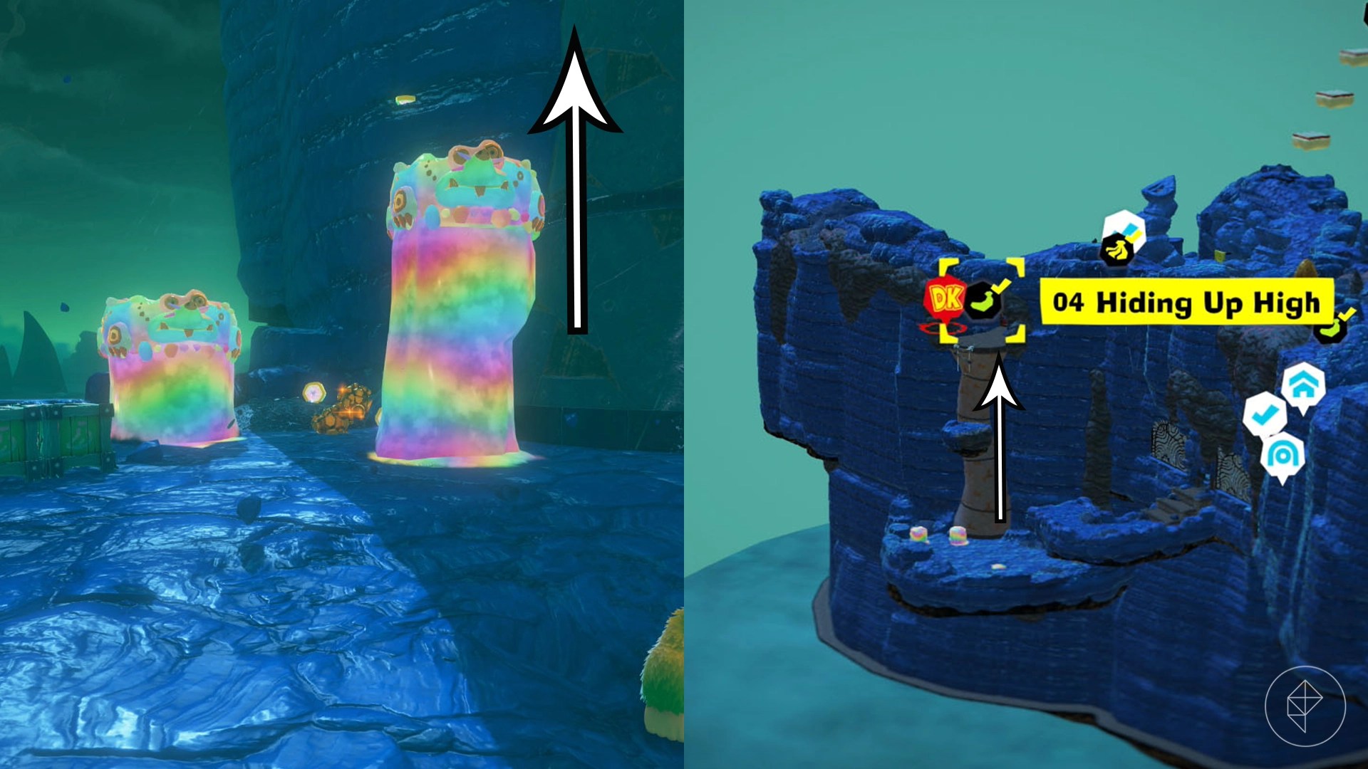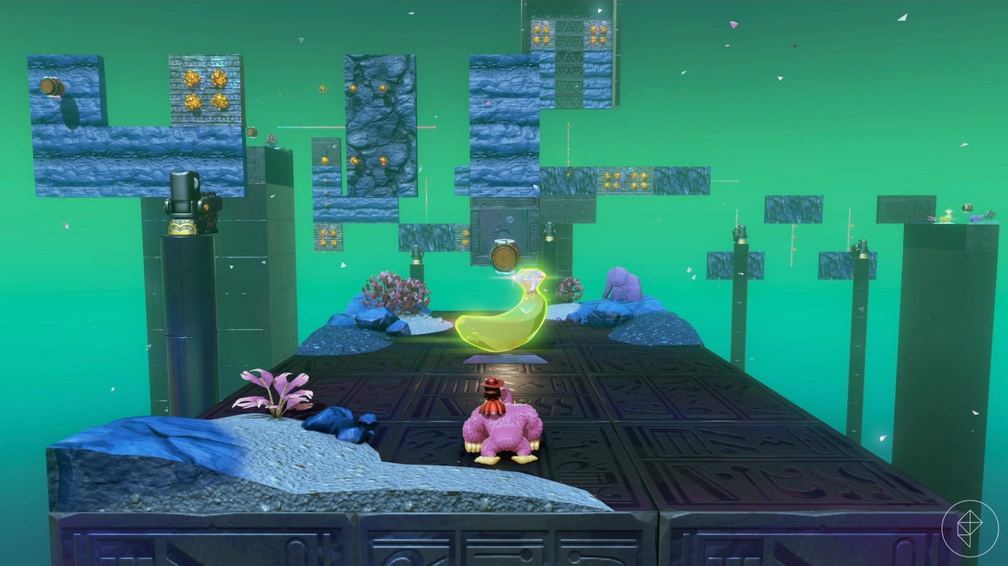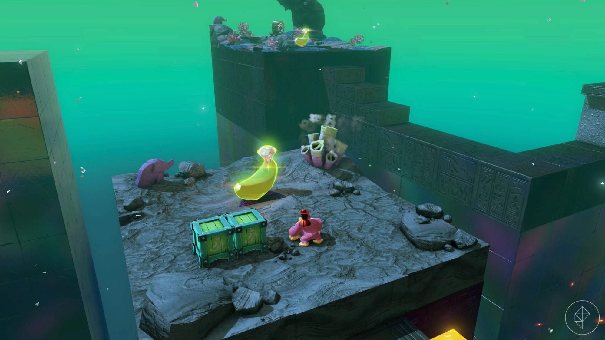 This banana is under the water. Dive punch down from the nearby cliff to smash it.