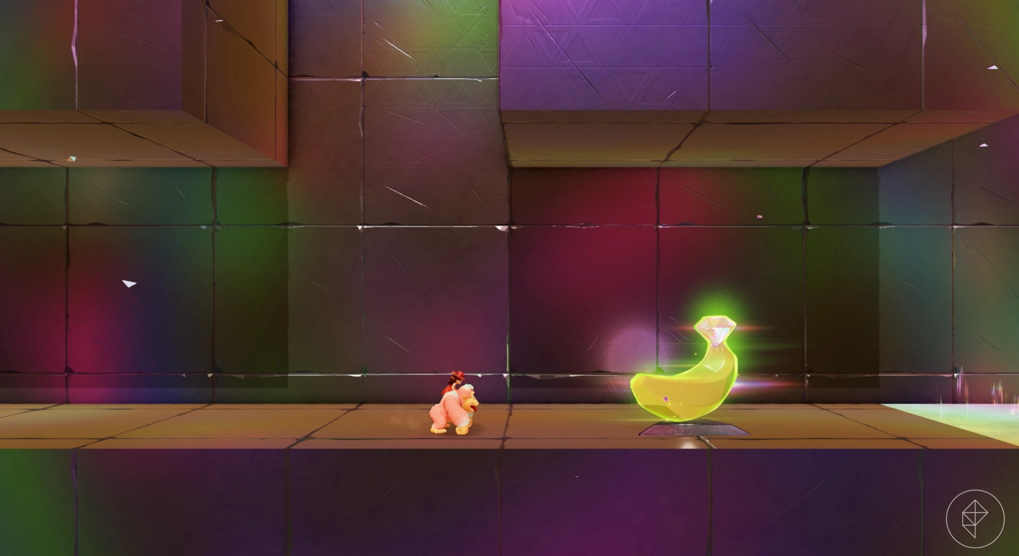 Hit the shifty triangle and then use Elephant Bananza to inhale the closests “steps” and then create chunks to throw at the ones out of reach to get this banana.