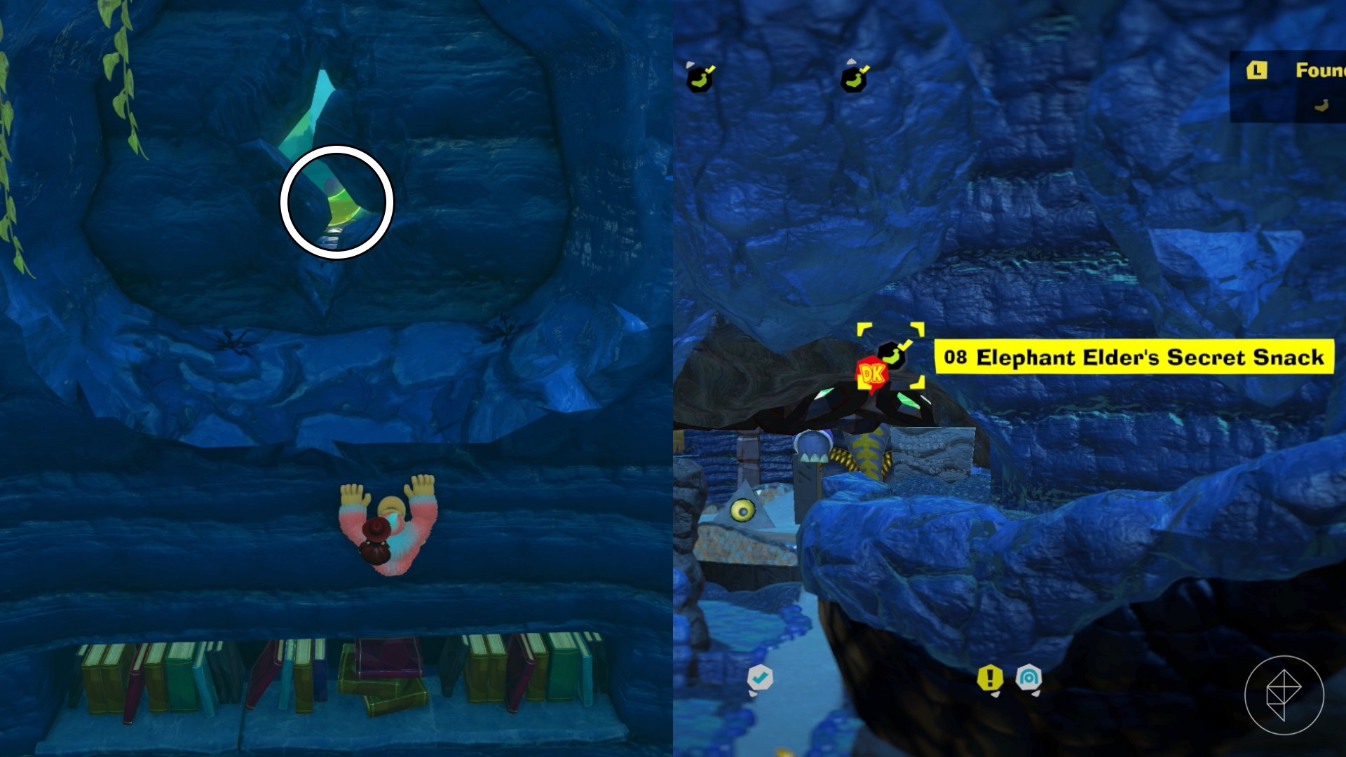 Climb the wall behind the Elephant Elder where there are three shelves of books. After the third, there’s an opening and a cracked wall. Break it to find this banana.