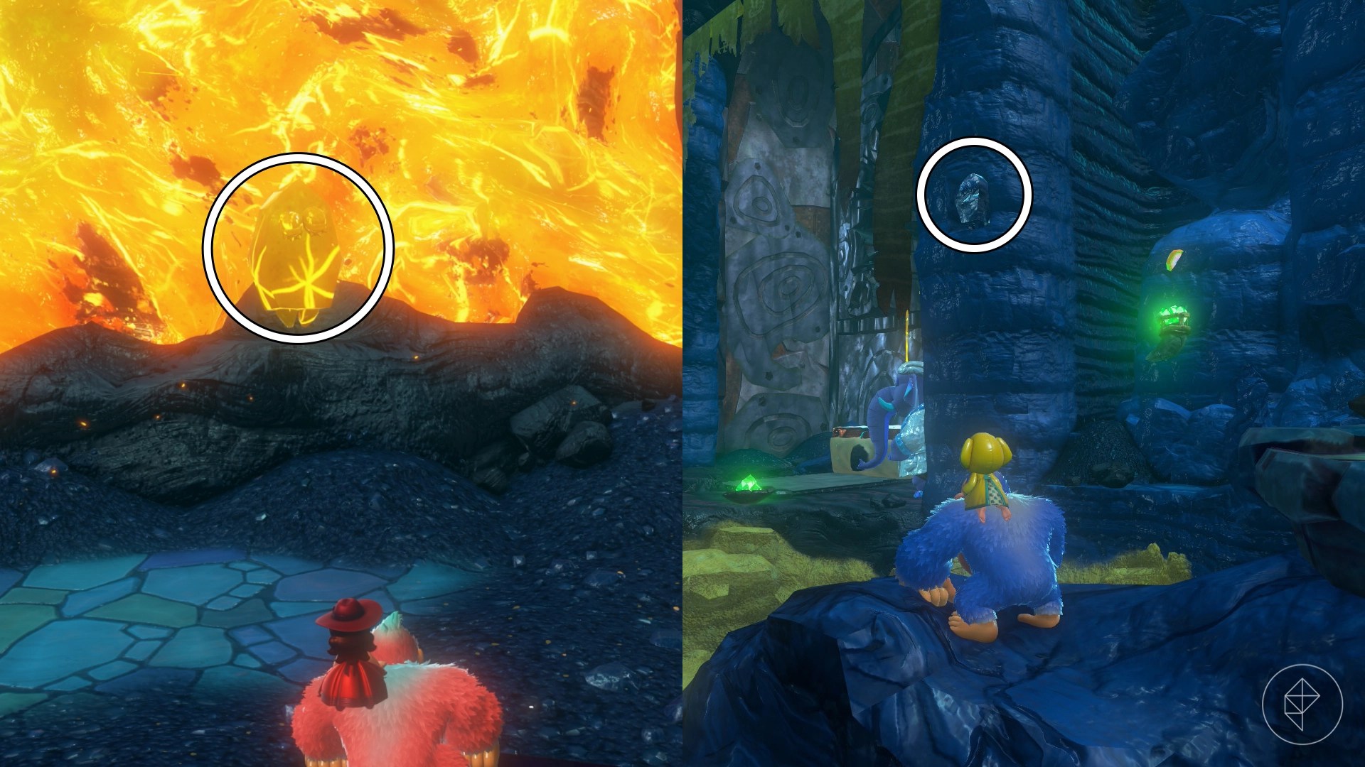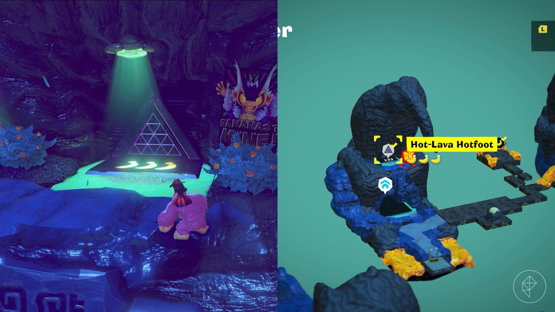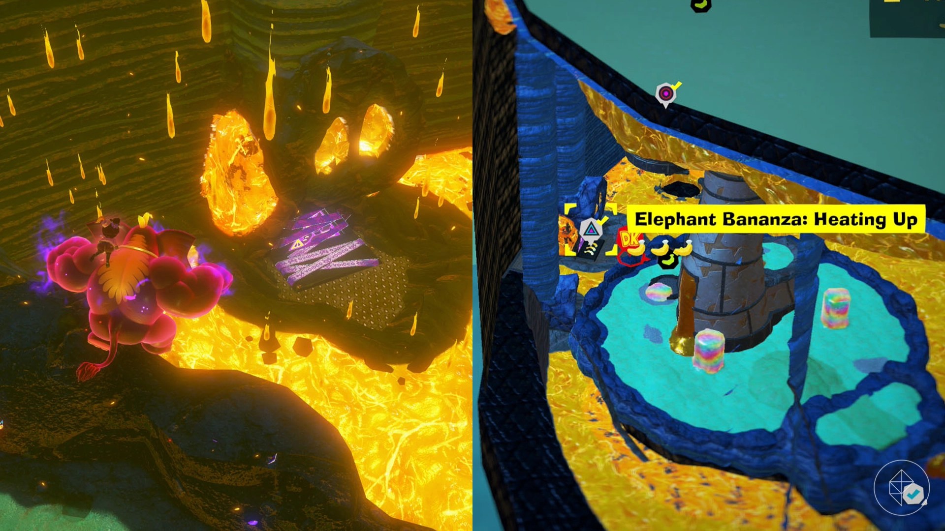 Use a combination of DK’s Hand Slap with Elephant Bananza’s inhaling to get rid of the lava and scout out this banana that’s buried underneath. Be careful as you navigate around this maze, as the camera angles can get kind of wonky.