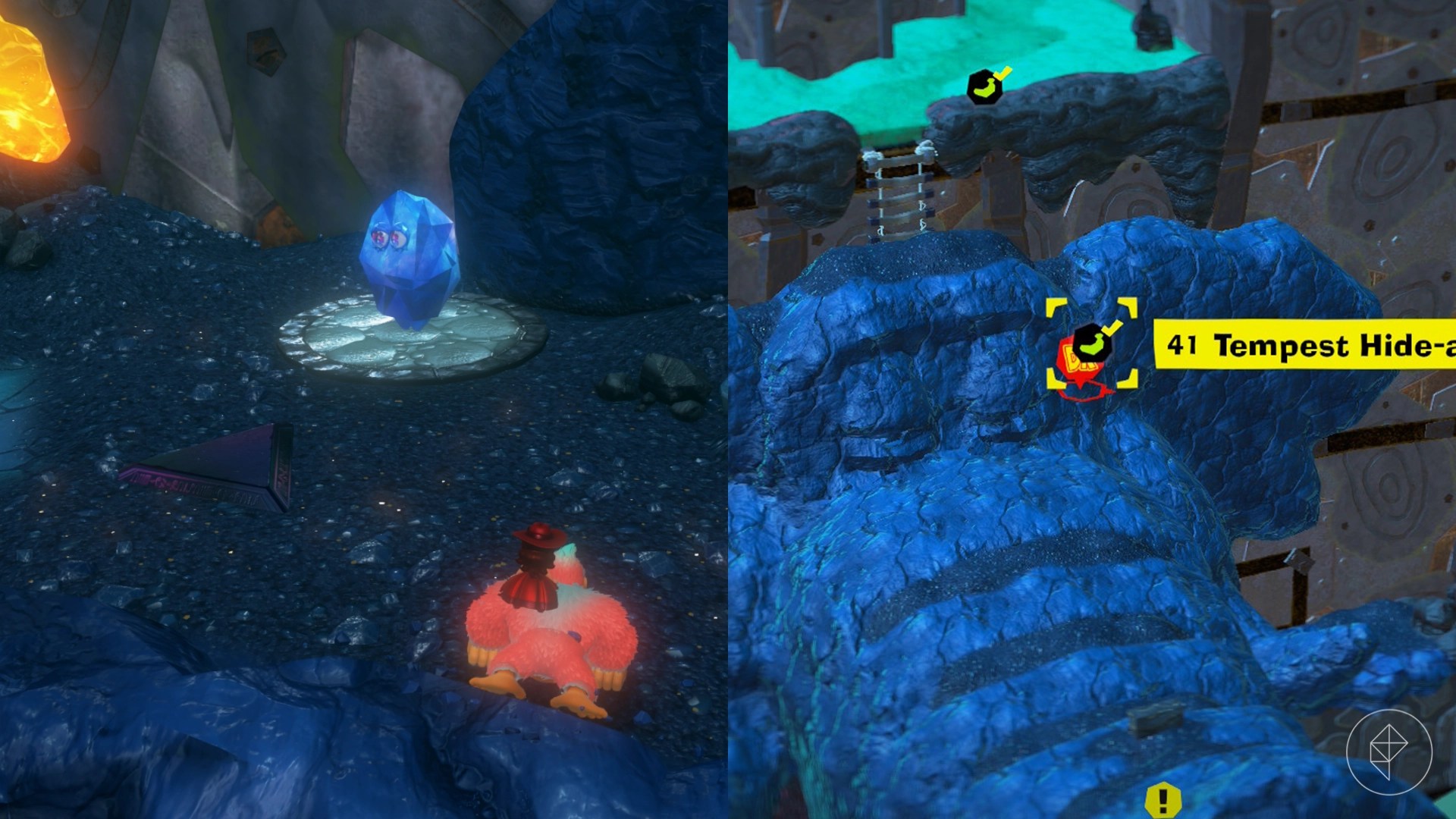 On the outskirts of Mount Gusty Tusk, on the other side of the wall behind the getaway, there’s an area where a tornado appears and follows you. You will find this Banandium Gem inside a small opening in the wall.