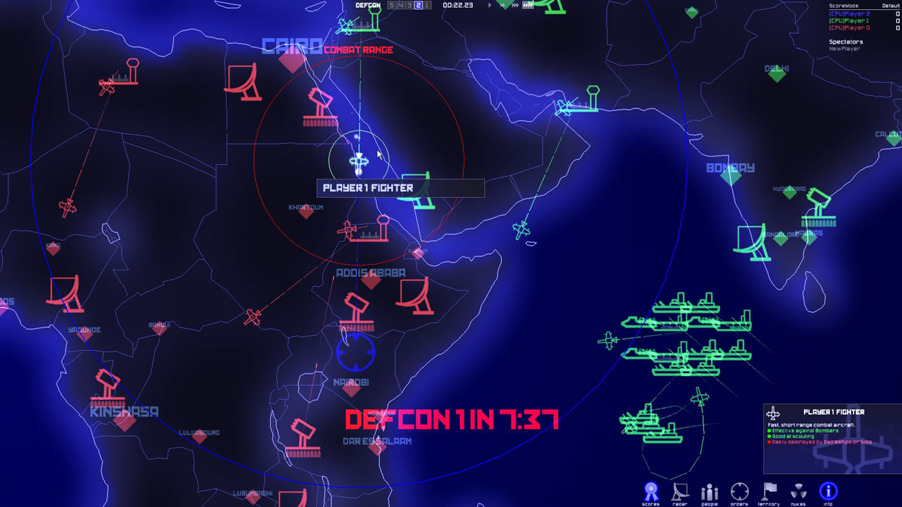 DEFCON’s sinister blue world map is the perfect stage for this Cold War horror story about the outbreak of nuclear war. First, you manage stockpiles, and position missile sites, nuclear submarines and countermeasures in preparation for armageddon. This organisation phase is an interesting strategic challenge in itself, but DEFCON is at its most effective when the missiles fly.