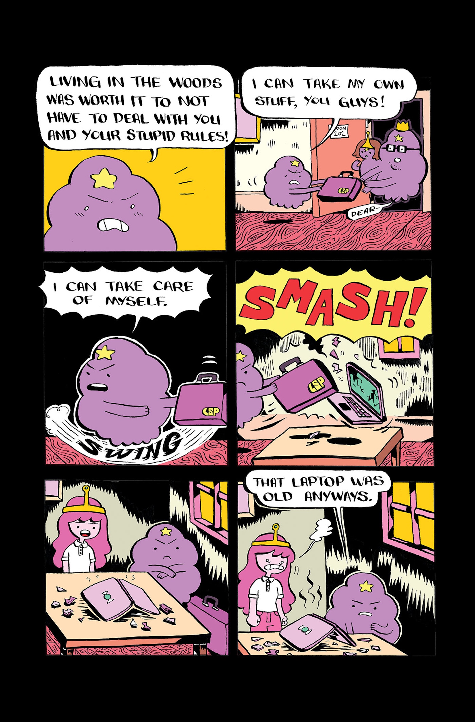 All seems well at first, but between her overloaded course schedule (those princess pre-reqs are no joke), conflicts with roommates (including the ever-selfish Lumpy Space Princess), overly enthusiastic bodyguards (presumably of the banana variety,) and assassination attempts, Bubblegum is struggling to acclimate to her new environment. How will she cope?