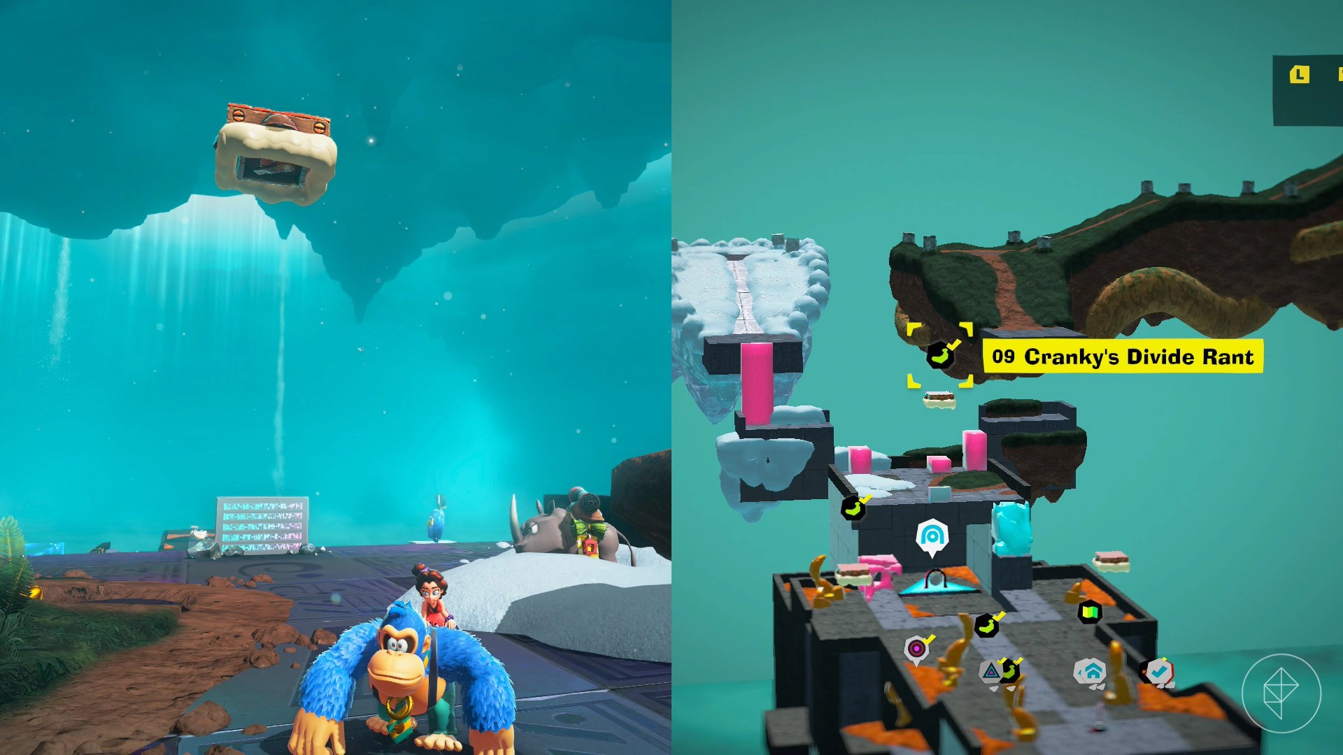 The Divide is a fairly short level, so it’s extremely easy to blitz through and miss all of the bananas hidden inside. Make sure to look up and down as you traverse the area or else you’ll miss out on a bunch of Banandium Gems and a couple familiar faces. The Divide also acts as a path to your next destination, but this time you’re given a choice — the Freezer Layer or the Forest Layer?