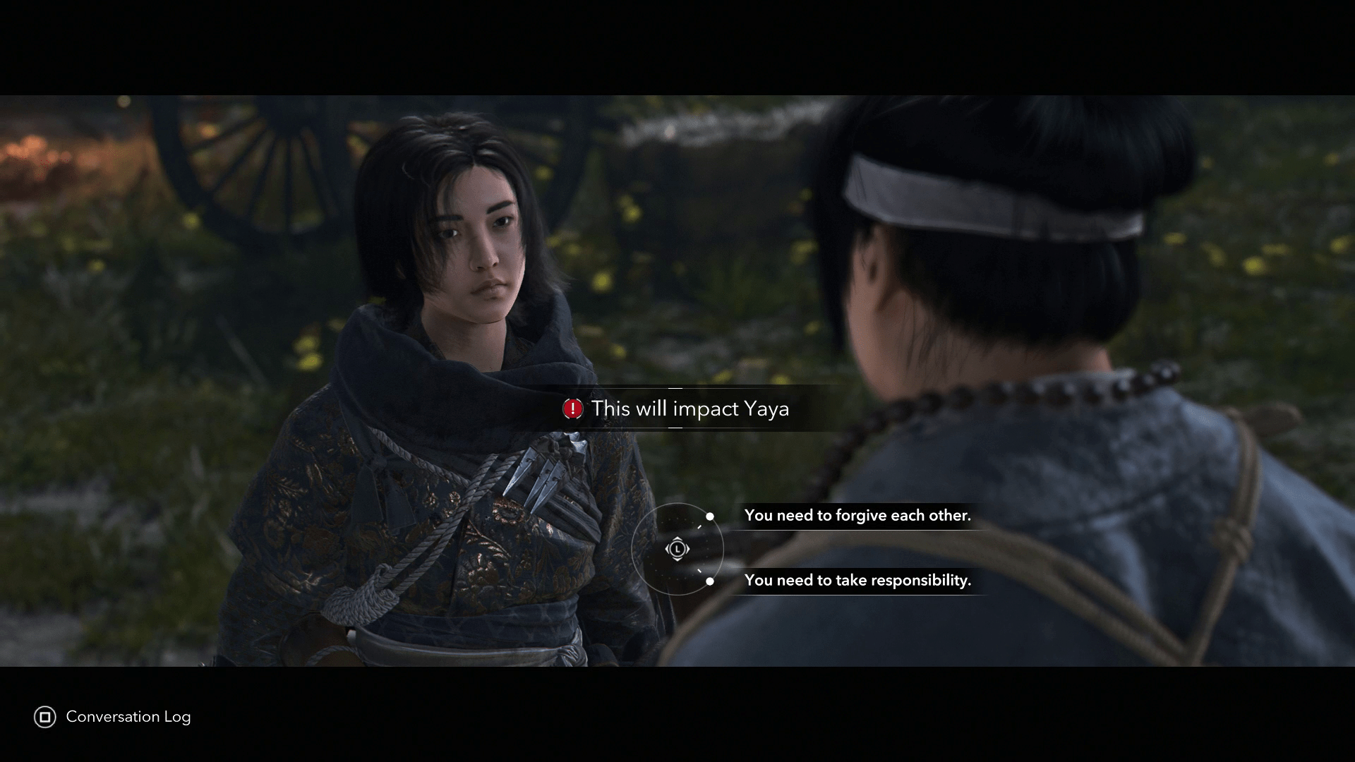Naoe makes a choice when speaking to Yaya in Assassin’s Creed Shadows