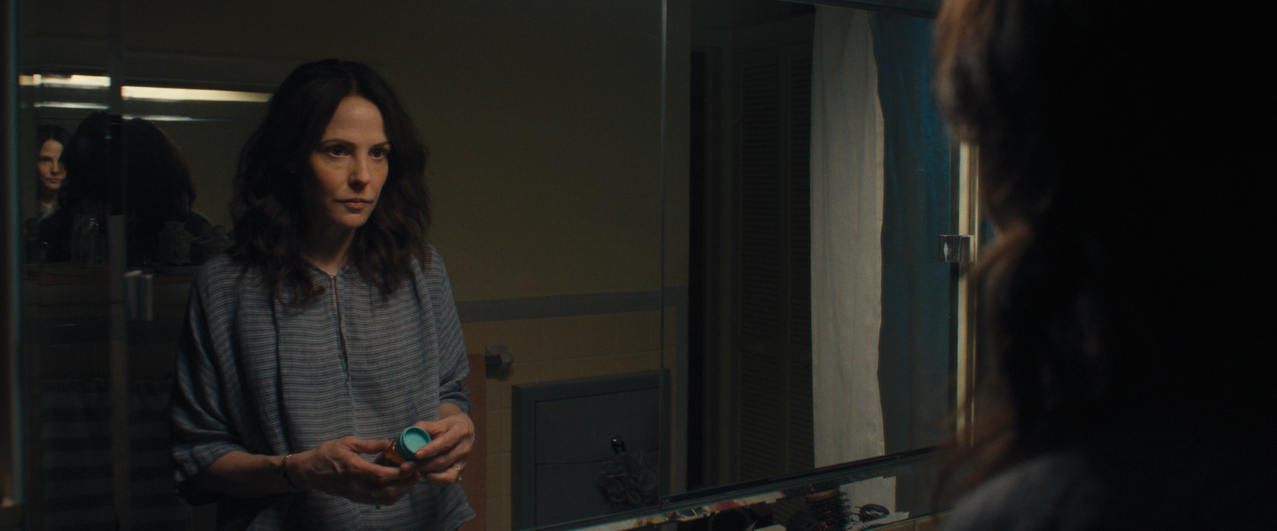 Omni Loop is a time-loop movie with an important difference. It’s not the length of time involved, although Zoya Lowe (Mary-Louise Parker) has the relatively luxurious span of a week to live over and over again. It’s a question of choice. In most time-loop movies, the characters have somehow become trapped in the loop against their will and are looking for a way out of an existential nightmare. In Omni Loop, Zoya chooses to take a pill and restart the week, every single time.