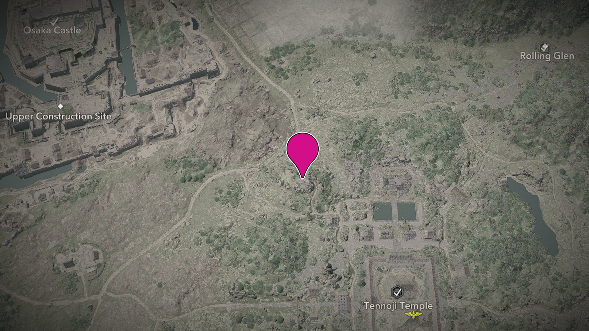 The “Thrown to the Dogs” quest will be on the People of Settsu board of your Objectives menu after you reach the Hideout in the main story. The start point for the quest will already be on your map. Look for it northeast of Osaka and northwest of Tennoji Temple, home to three Lost Pages.