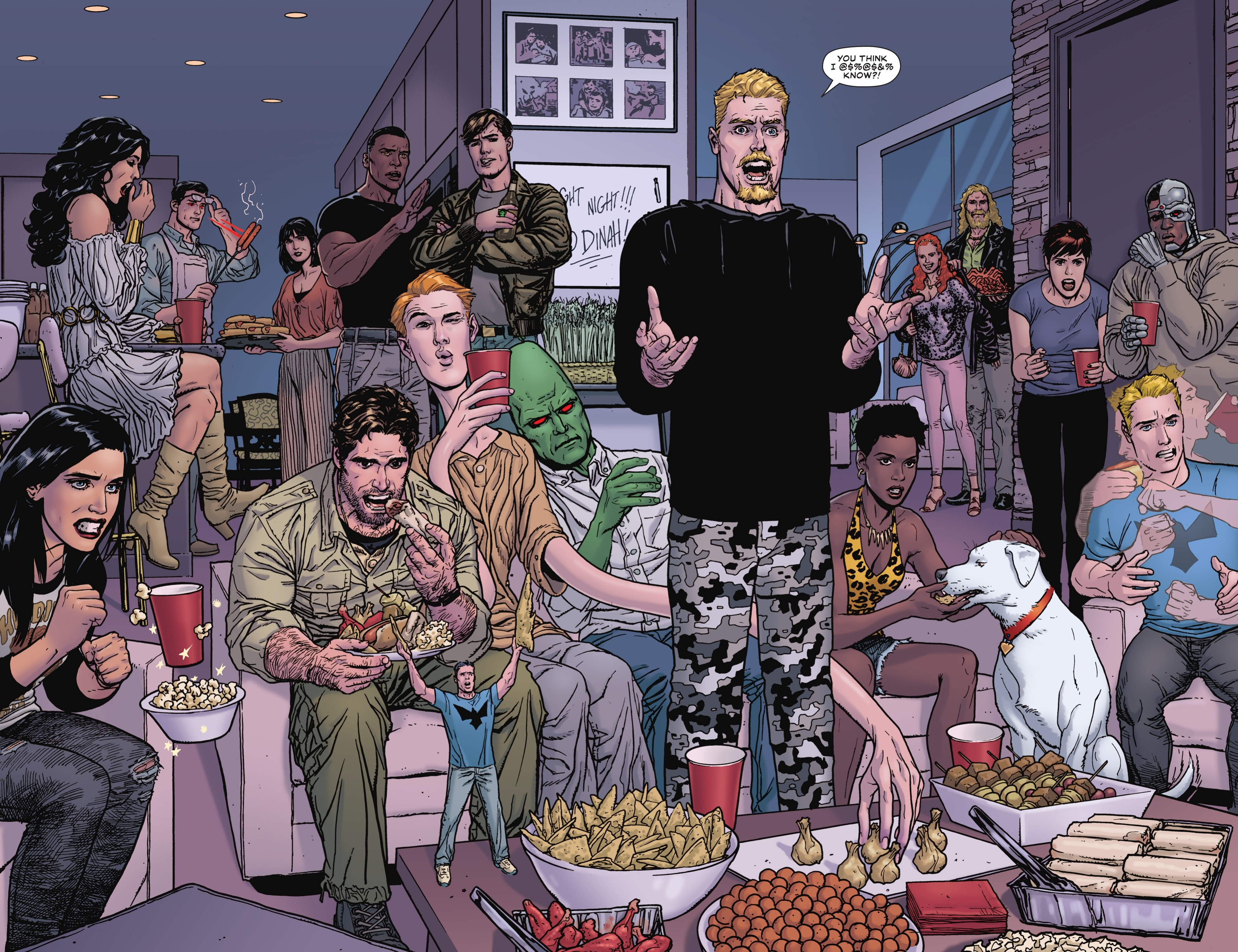 Shoot, I would have bet money the guy on the couch just inhaling protein from a plate was supposed to be Batman. Now I have to reassess.