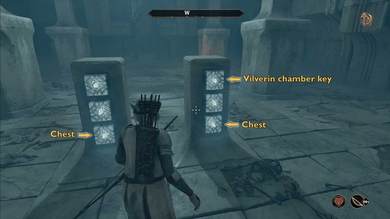 In the southern part of Vilverin Wendesel the dungeon, there is a puzzle with six blocks inside a room with six doors. Each block opens and closes a certain door in the room. Pressing the upper right block will open the door with the Vilverin chamber key (the key you need to proceed). Two of the other two blocks will open doors to rooms that contains chests, but be prepared to fight some undead.