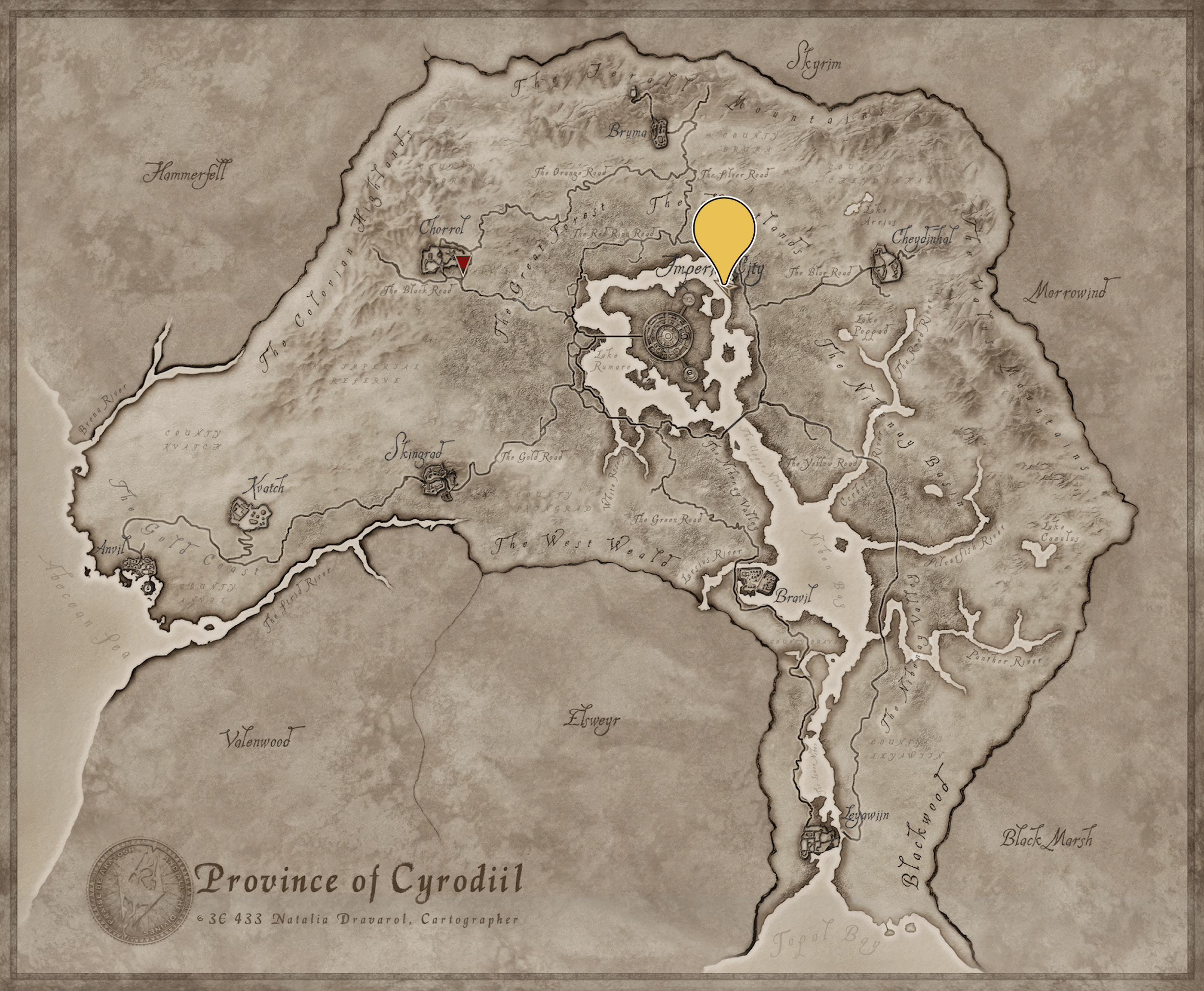Vilverin is located just northeast of the Imperial City. You know you’ve found it when you find scattered ruins and a door with a glowing blue sigil. Walk up to the door, and the game will allow you to pass through the “Stone Door to Vilverin” and enter the dungeon.