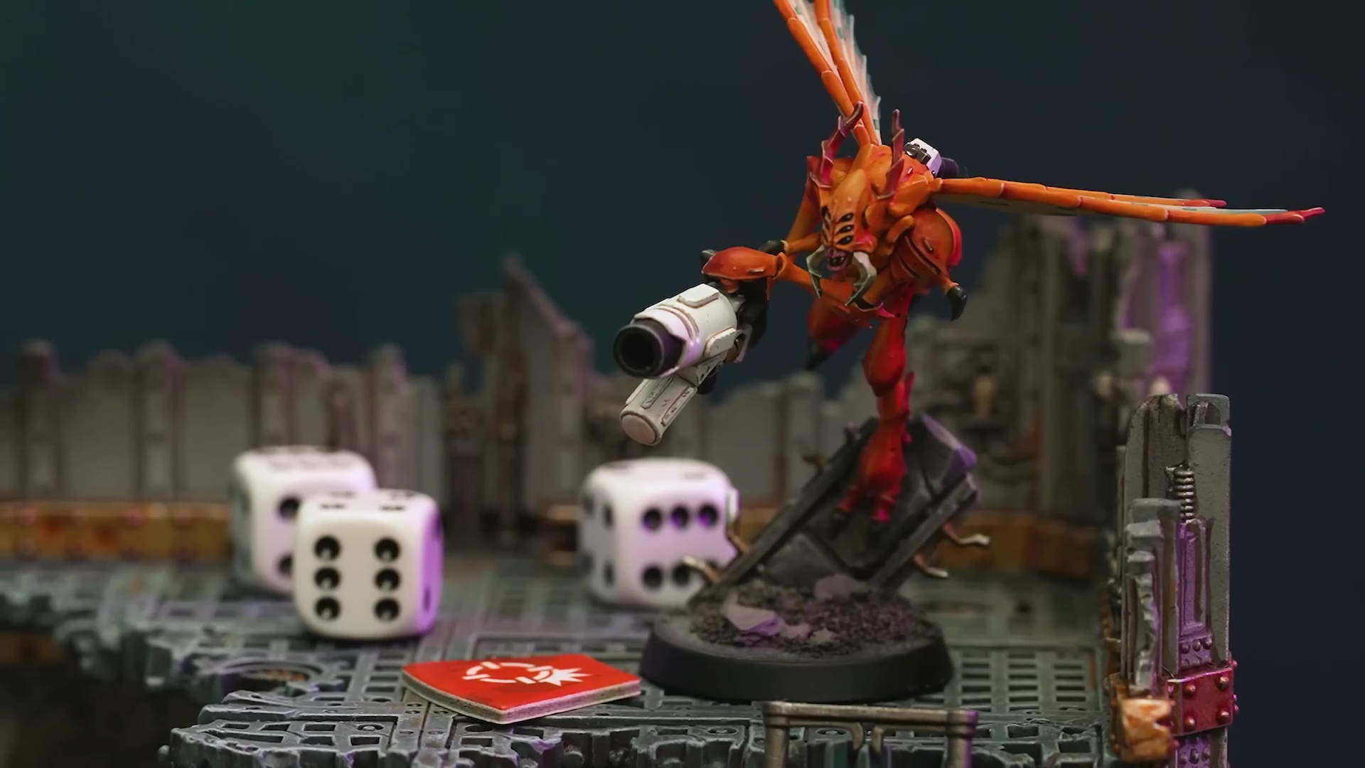Hivestorm is a pretty big boxed set, complete with multi-story plastic terrain pieces and two 10-unit kill teams — the Tau’s Vespid Stingwings and the Imperial Guard’s Tempestus Aquilons. What’s unusual about these two factions is that both of them are airborne with the ability to fly across the map, unlike virtually every other faction yet released for the game. As a result, the entire product feels more like Advanced Kill Team than an introductory starter set. And the marketing push, aimed squarely at existing fans, seems to support that.