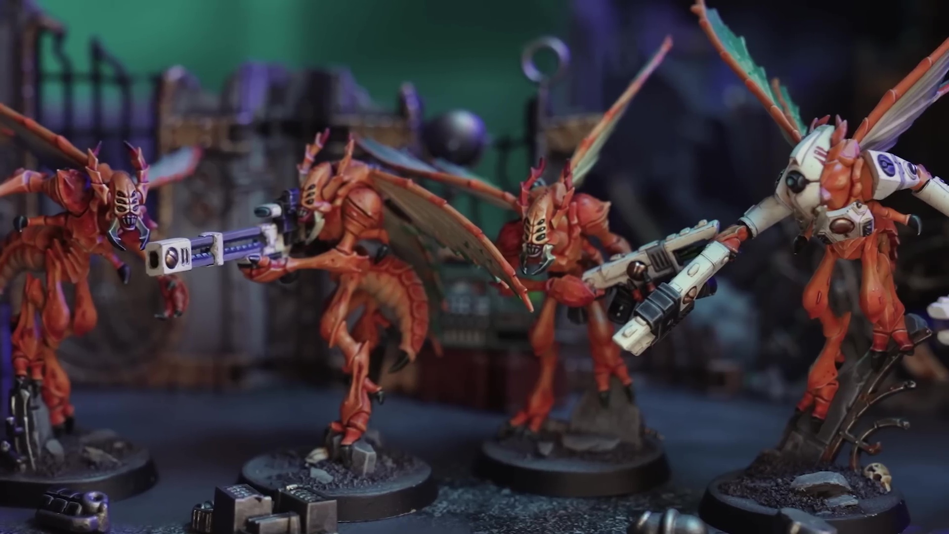Hivestorm is a pretty big boxed set, complete with multi-story plastic terrain pieces and two 10-unit kill teams — the Tau’s Vespid Stingwings and the Imperial Guard’s Tempestus Aquilons. What’s unusual about these two factions is that both of them are airborne with the ability to fly across the map, unlike virtually every other faction yet released for the game. As a result, the entire product feels more like Advanced Kill Team than an introductory starter set. And the marketing push, aimed squarely at existing fans, seems to support that.