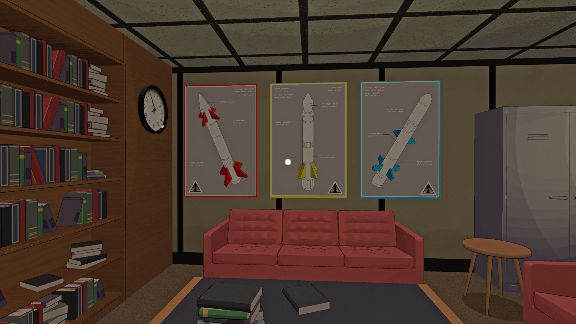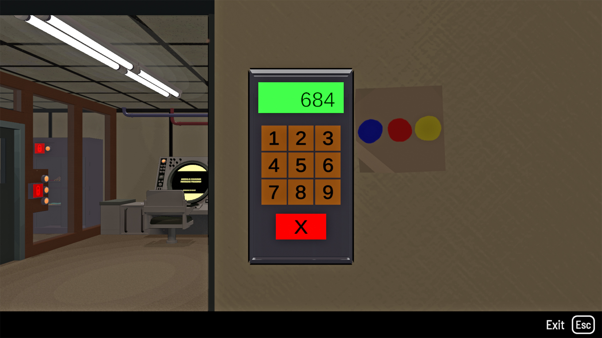To find the three-digit code, turn around. See the rocket posters on the wall behind you? They match the colors of the dots, with a poster each in red, yellow, and blue.
