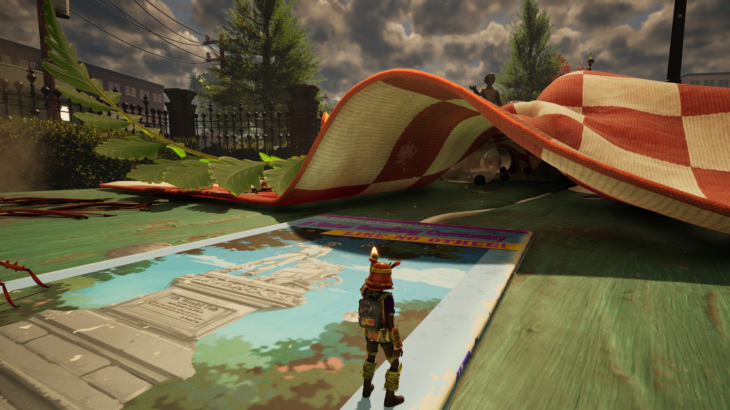 Climb up the picnic blanket on your buggy, and don’t stop to deal with the O.R.C Weevils along the way, as they explode and deal hefty damage. Once you reach the seat, turn right, and go under the cloth. Ignore the Orb Weaver Jr, and walk across the bar to reach the other side. You’ll see a briefcase and some small roaches. Go ahead and defeat the roaches, since you need roach chunks for the axe upgrade.