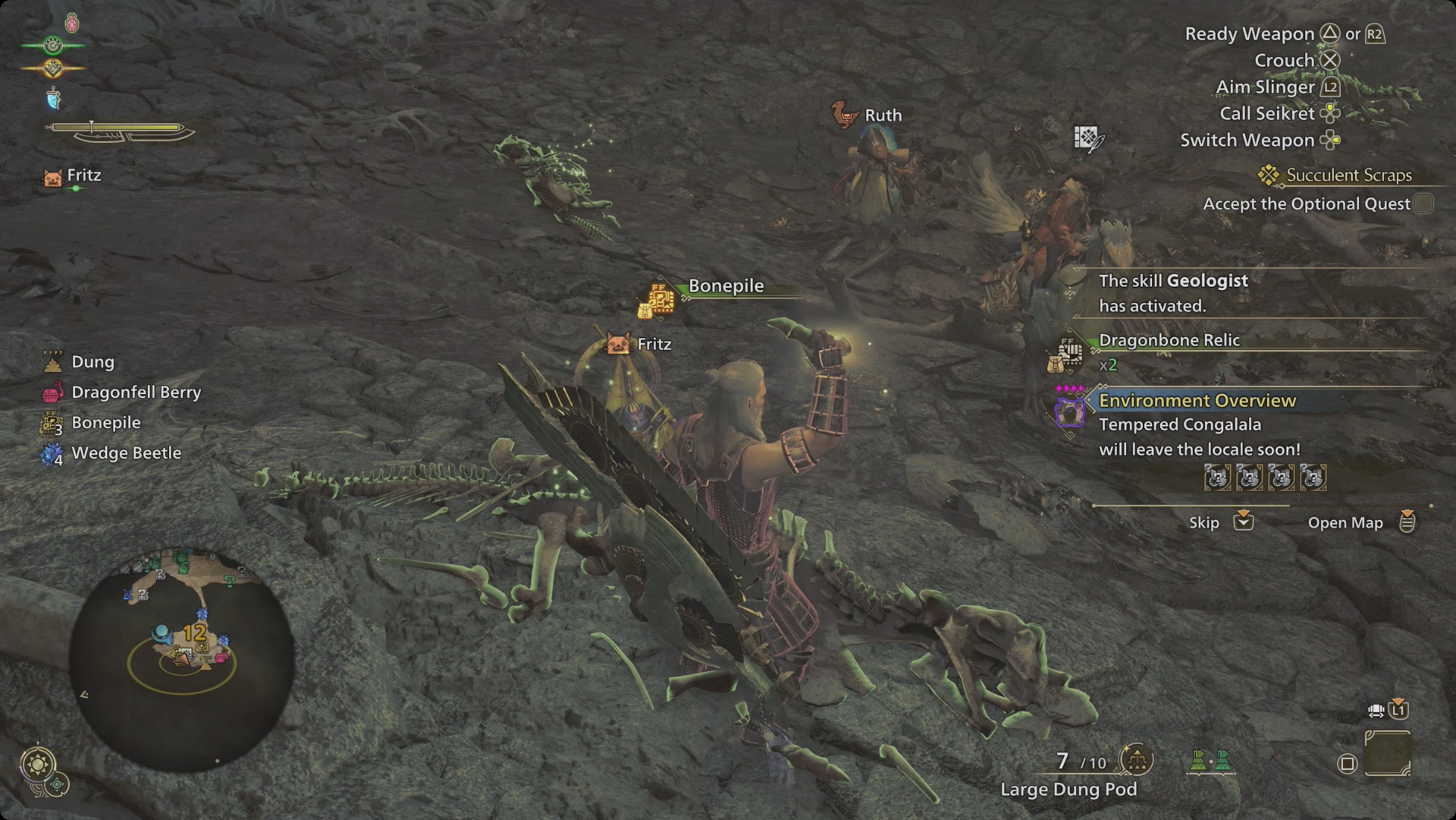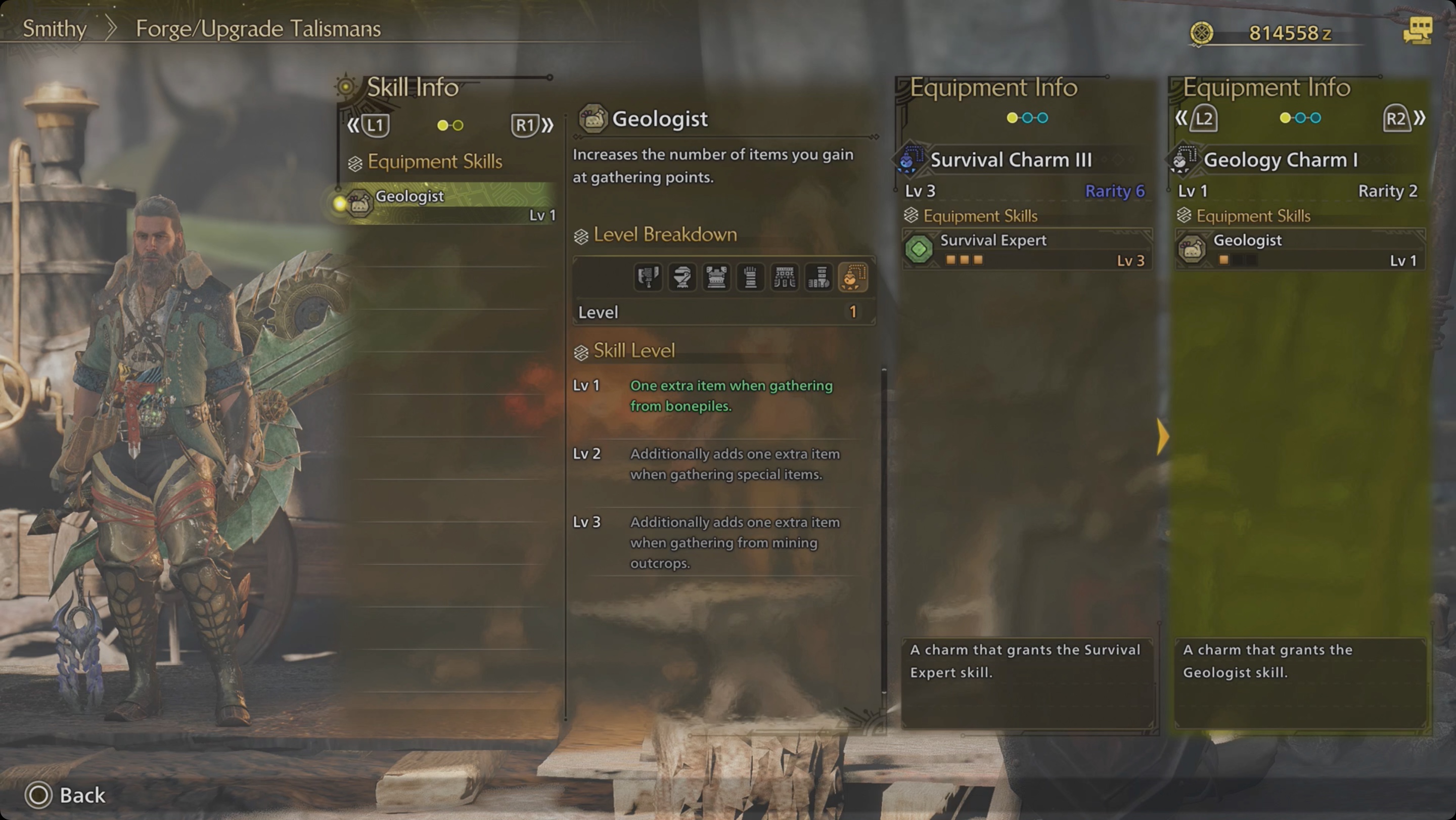 In Monster Hunter Wilds armors, talismans, and decorations all give you skills. The Geologist skill gets you one extra item from bonepiles per time you interact with them.