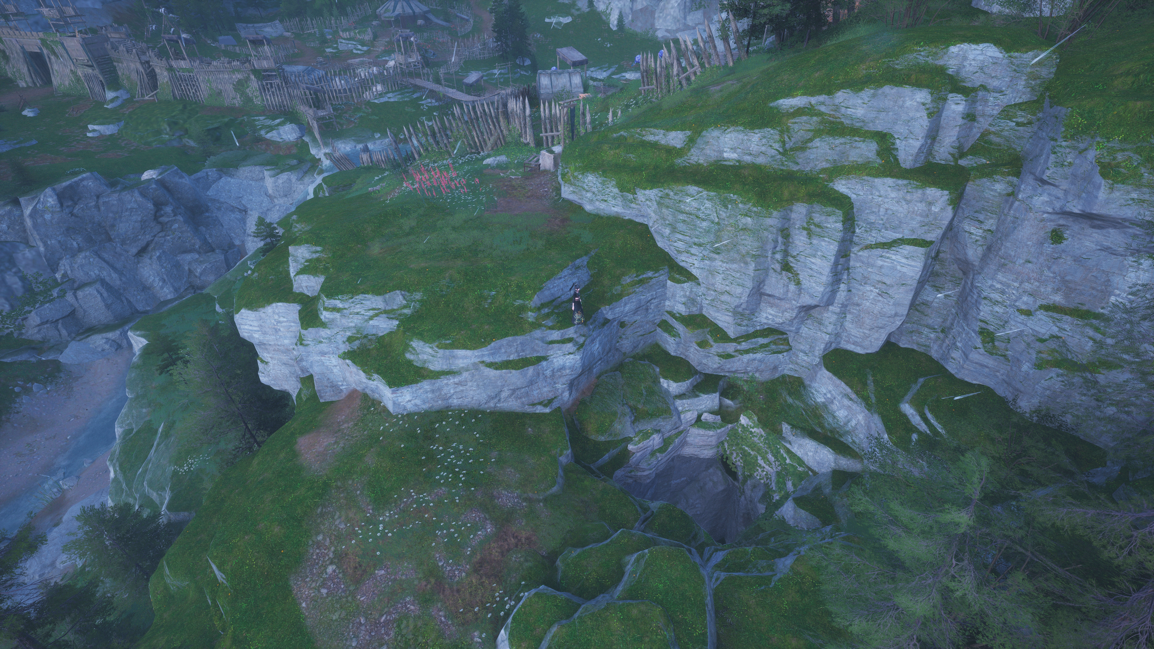 The cavern entrance is actually a huge hole in the ground that you can find by carefully tailing around the side of the cliffs on the northern side of the bridge. Here’s a picture of the cave hole with the bridge in the shot, so you can get a sense of where to go:
