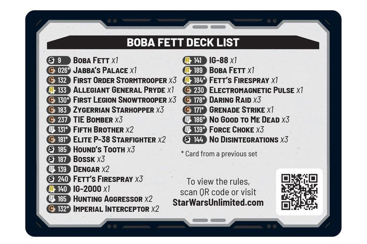 Unlike the two previous expansions, Jump to Lightspeed wont launch with a two-player starter box option, instead opting for a pair of premade decks built around Han Solo and Boba Fett. Jump to Lightspeed Spotlight Decks can only currently be pre-ordered as a pair from Miniature Market for $34.99. Both of the 50-card decks include tokens, a rulebook, and a single Jump to Lightspeed Booster Pack to jumpstart your collection.