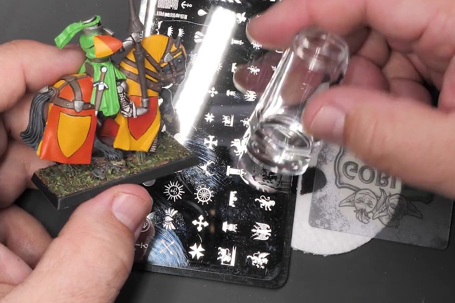 The hated feature in question is the humble waterslide decal, which hobbyists across dozens of different franchises have come to loathe over the years. Done well, using something like Microscale Industries’ Micro Sol and Micro Set, decals can look great. But it can be incredibly challenging to get a decal to lay flat on a curved surface — you know, stuff like shields and the shoulder pauldrons on Space Marines. Even if you’ve mastered the process, which is ably described in the Winterdyne Commission Modeling Blog guide to Waterslide Decals (included as part of our larger miniatures painting guide), it can still go pear-shaped on you if your surface isn’t properly prepared. The result? A ghostly white outline surrounding the art on the decal itself.
