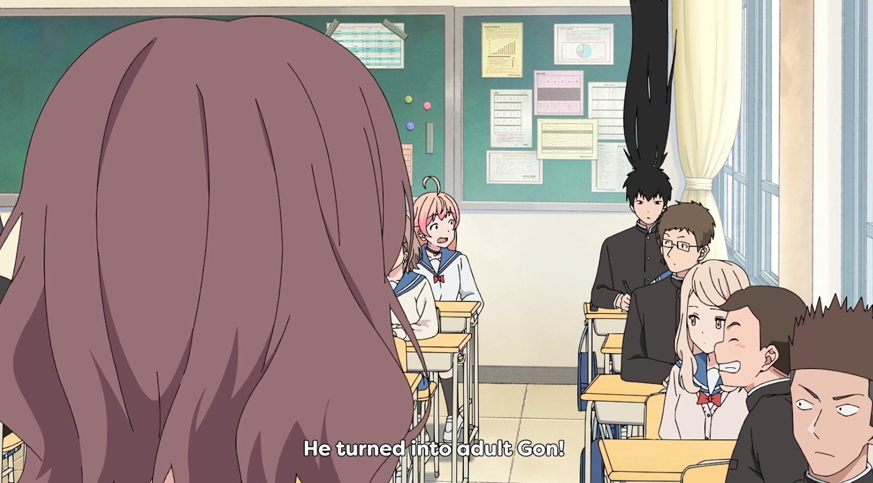 Ms. Makuwa does not want a class of teenagers tearing her to shreds for enjoying manga, so she keeps it a secret. Yet during the entire icebreaker, she keeps making comparisons to her favorite manga characters. When one of Nico’s spells backfires and accidentally makes Mohito’s hair shoot up in size, Ms. Makuwa compares him to Adult Gon in her head. Then, she promptly decides she isn’t going to worry about it and reminds herself that Kurapika is her fave anyway (this is why we’re kindred spirits).