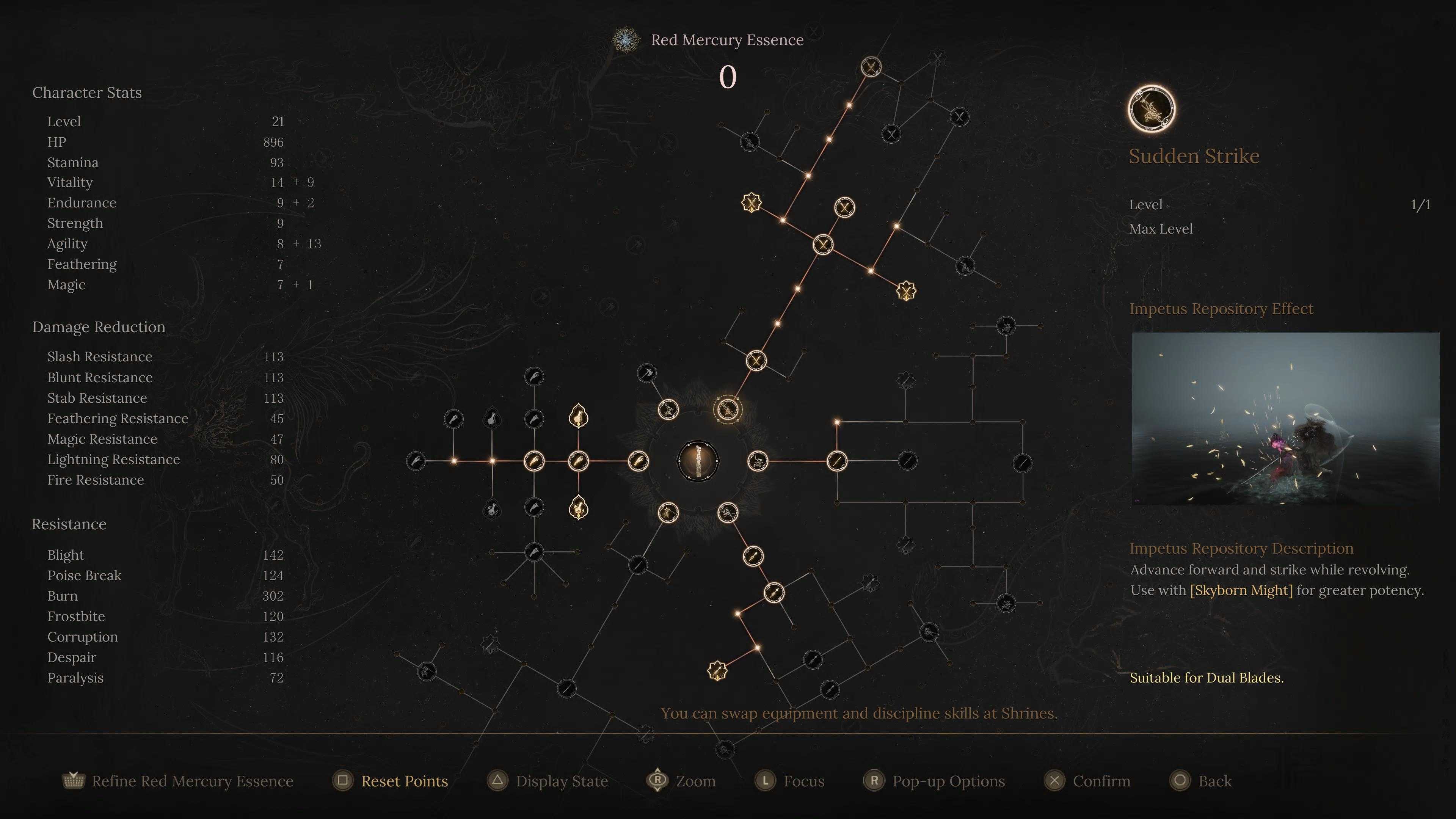 I gravitate toward the dual swords, as I prefer speedier, Bloodborne-esque weapon options rather than plodding war clubs or two-handed axes. In addition to your expected light and heavy attacks, they, along with all of Wuchang’s weapons, have weapon skills and discipline attacks. These are often damage-dealing moves, but some weapons start with the ability to block as a weapon skill (mapped to L1/LB). As you unlock more skills and attacks, you’ll be able to swap them out, customizing your arsenal.